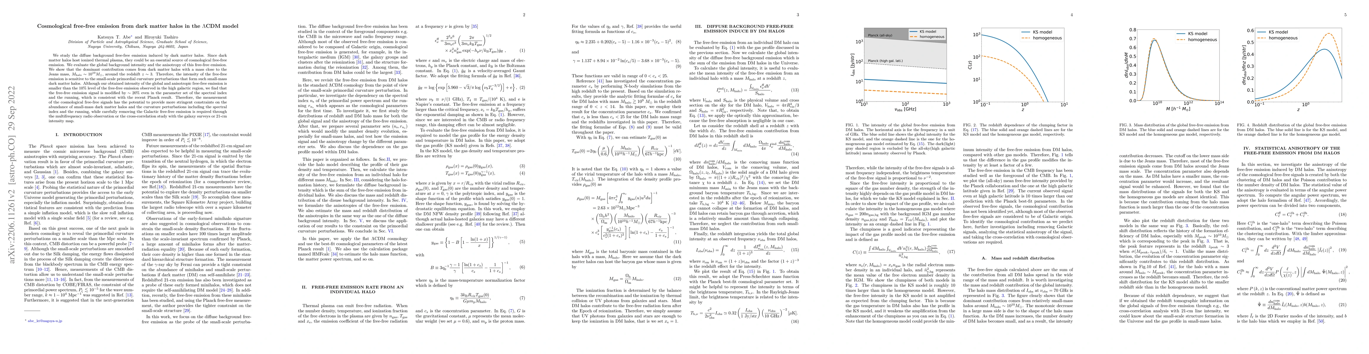 This paper investigates the diffuse free-free emission from dark matter halos in the $\Lambda$CDM model, finding that halos with masses around $10^{10} M_\odot$ at $z \sim 3$ contribute significantly. The study suggests that precise measurements of this emission could provide tighter constraints on small-mass dark matter halos and primordial curvature perturbations.