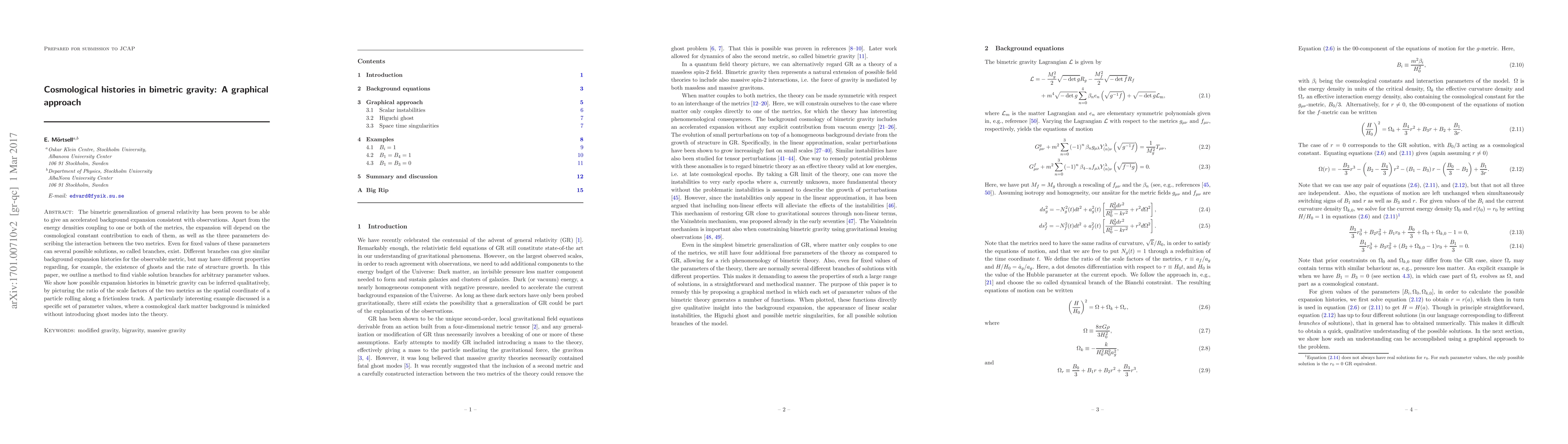 This paper explores the cosmological histories in bimetric gravity using a graphical method to identify viable solution branches. It demonstrates how the ratio of the scale factors of two metrics can be visualized as a particle's motion along a frictionless track, providing insights into the expansion history, potential ghosts, and structure growth rates.