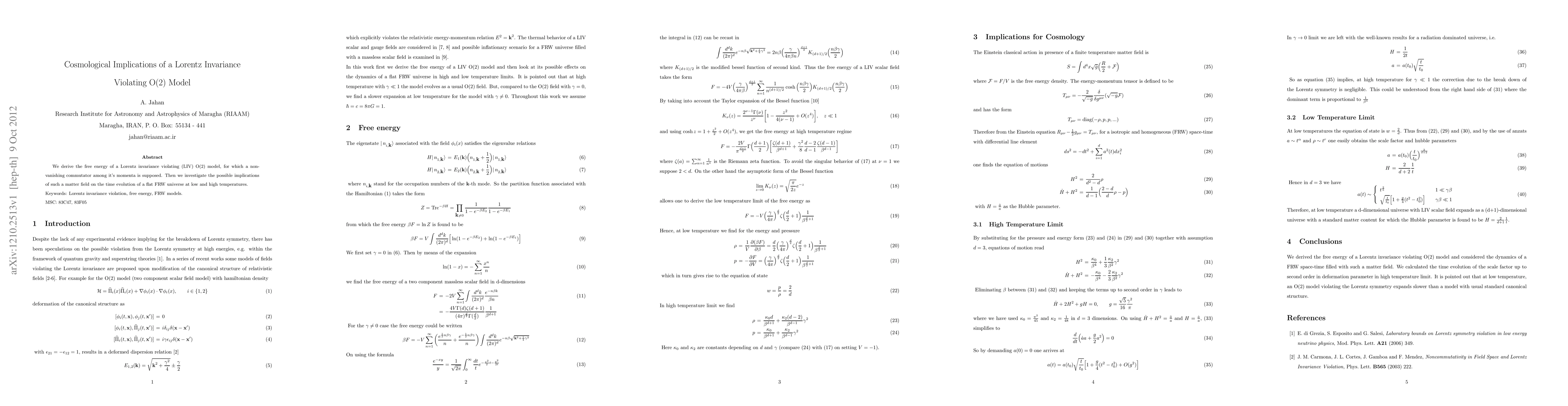 This research derives a free energy model for a Lorentz invariance violating O(2) matter field, then explores its impact on the expansion of a flat Friedmann-Robertson-Walker (FRW) universe at varying temperatures, revealing potential cosmological implications.