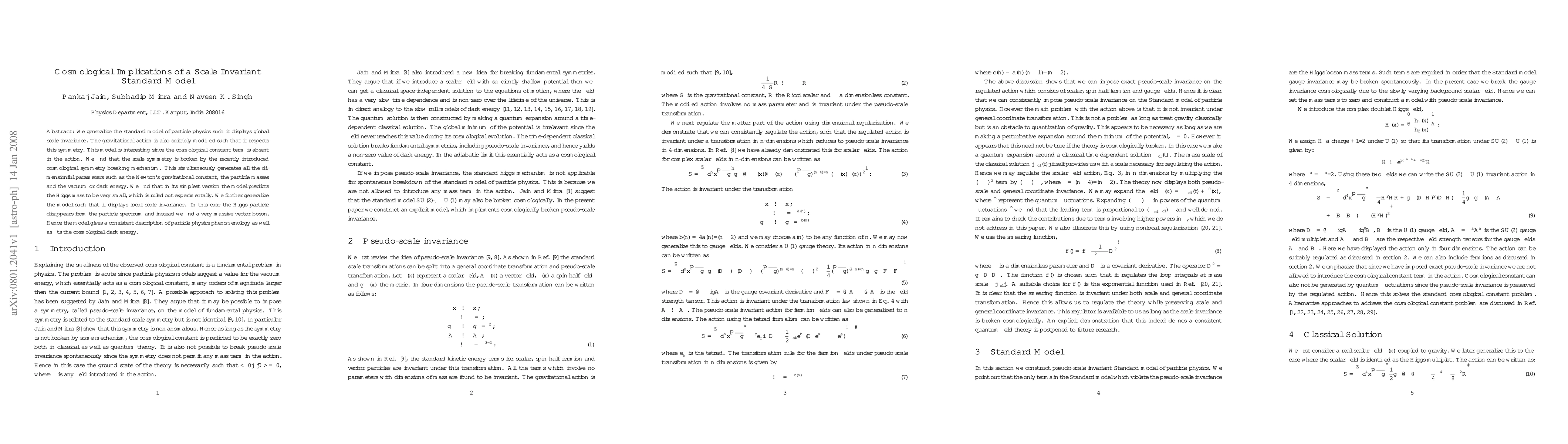 This paper proposes a generalized standard model with global and local scale invariance, which eliminates the cosmological constant problem. The model predicts a small Higgs mass, which is experimentally ruled out, but a modified version introduces a massive vector boson instead, offering a consistent cosmological and particle physics framework.