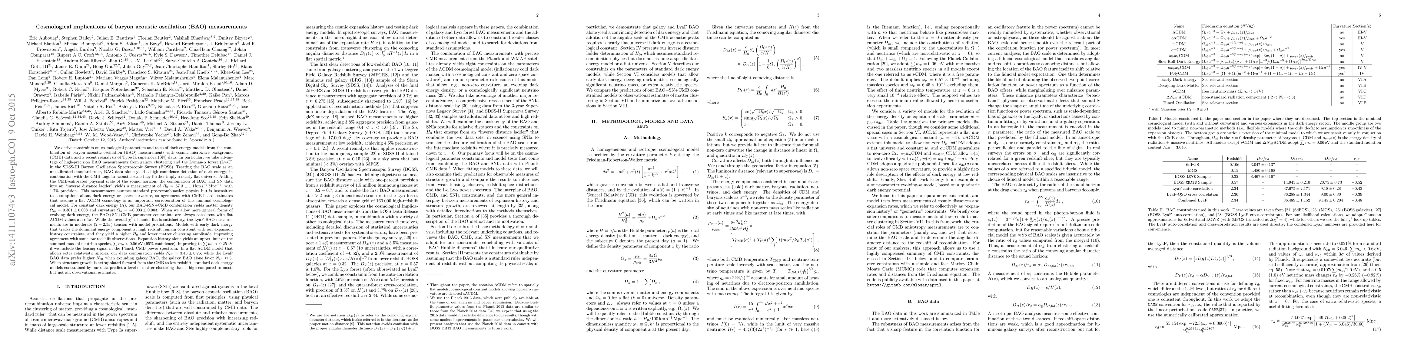 This paper combines baryon acoustic oscillation (BAO) measurements with cosmic microwave background (CMB) and Type Ia supernova (SN) data to derive constraints on cosmological parameters and test dark energy models. The results support a nearly flat universe and provide a precise measurement of the Hubble constant, independent of assumptions about dark energy or space curvature.