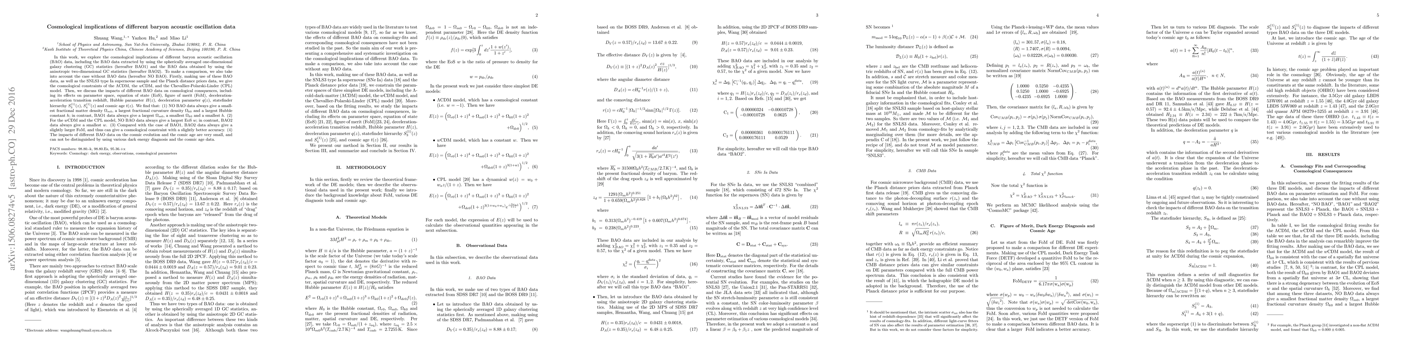 This paper investigates the cosmological implications of different baryon acoustic oscillation (BAO) data, comparing BAO1 and BAO2 data against a scenario without BAO data (NO BAO). It finds that NO BAO data yield the smallest matter density, largest curvature density, and highest Hubble constant, while BAO1 data provide the largest matter density, smallest curvature density, and smallest Hubble constant. BAO2 data slightly improve cosmological constraint accuracy. The impacts on cosmic evolution and age are minimal.