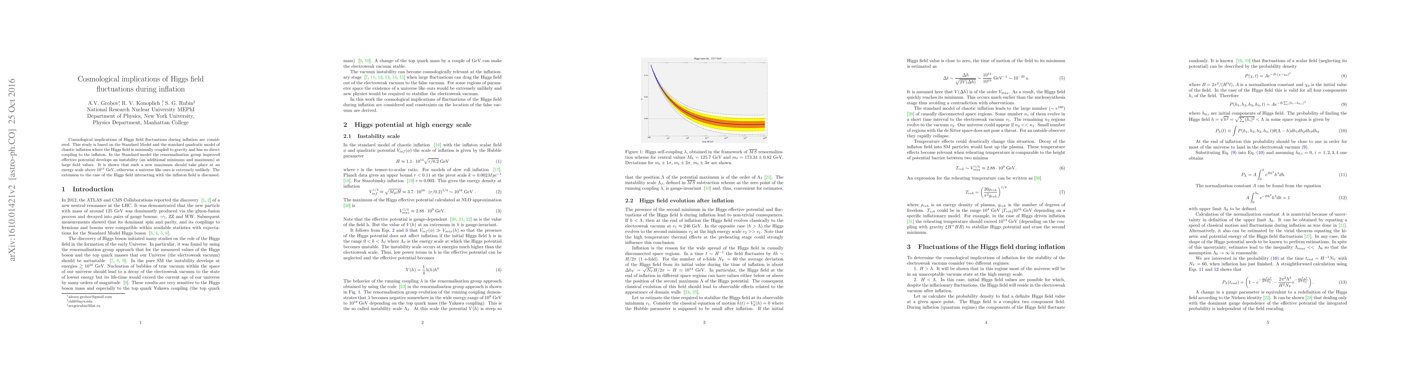This paper explores the cosmological implications of Higgs field fluctuations during inflation, revealing that a new maximum in the effective potential above $10^{14}$ GeV is necessary for a universe like ours to form. It also examines the interaction between the Higgs and inflaton fields.