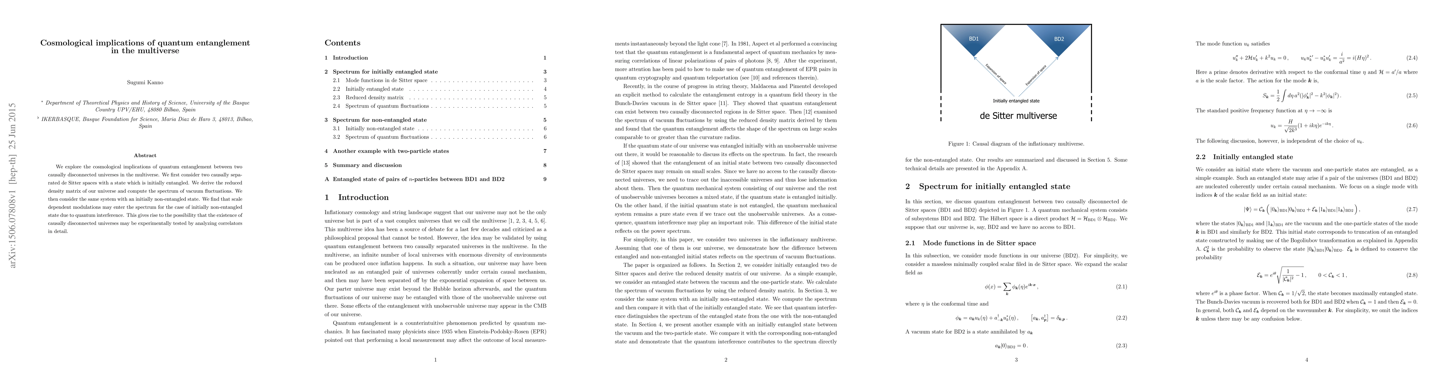 We explore the cosmological implications of quantum entanglement between two causally disconnected universes in the multiverse. We first consider two causally separated de Sitter spaces with a state which is initially entangled. We derive the reduced density matrix of our universe and compute the spectrum of vacuum fluctuations. We then consider the same system with an initially non-entangled state. We find that scale dependent modulations may enter the spectrum for the case of initially non-entangled state due to quantum interference. This gives rise to the possibility that the existence of causally disconnected universes may be experimentally tested by analyzing correlators in detail.