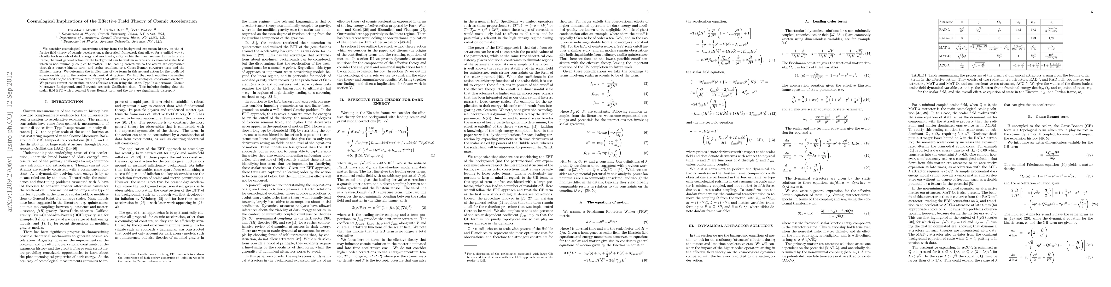 We consider cosmological constraints arising from the background expansion history on the ef- fective field theory of cosmic acceleration, a theoretical framework that allows for a unified way to classify both models of dark energy and modified gravity within the linear regime. In the Einstein frame, the most general action for the background can be written in terms of a canonical scalar field which is non-minimally coupled to matter. The leading corrections to the action are expressible through a quartic kinetic term, and scalar couplings to a Gauss-Bonnet curvature term and the Einstein tensor. We determine the implications of the terms in this general action for the predicted expansion history in the context of dynamical attractors. We find that each modifies the matter dominated and/or accelerative eras in ways that allow us to place cosmological constraints on them. We present current constraints on the effective action using the latest Type Ia supernovae, Cosmic Microwave Background, and Baryonic Acoustic Oscillation data. This includes finding that the scalar field EFT with a coupled Gauss-Bonnet term and the data are significantly discrepant.