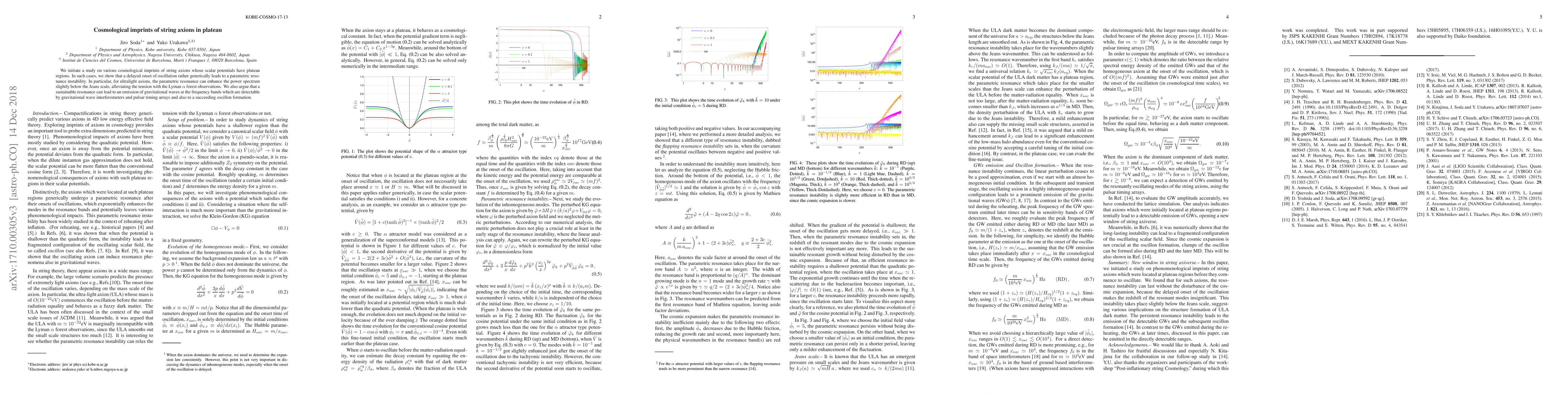 We initiate a study on various cosmological imprints of string axions whose scalar potentials have plateau regions. In such cases, we show that a delayed onset of oscillation generically leads to a parametric resonance instability. In particular, for ultralight axions, the parametric resonance can enhance the power spectrum slightly below the Jeans scale, alleviating the tension with the Lyman $\alpha$ forest observations. We also argue that a long-lasting resonance can lead to an emission of gravitational waves at the frequency bands which are detectable by gravitational wave interferometers and pulsar timing arrays.