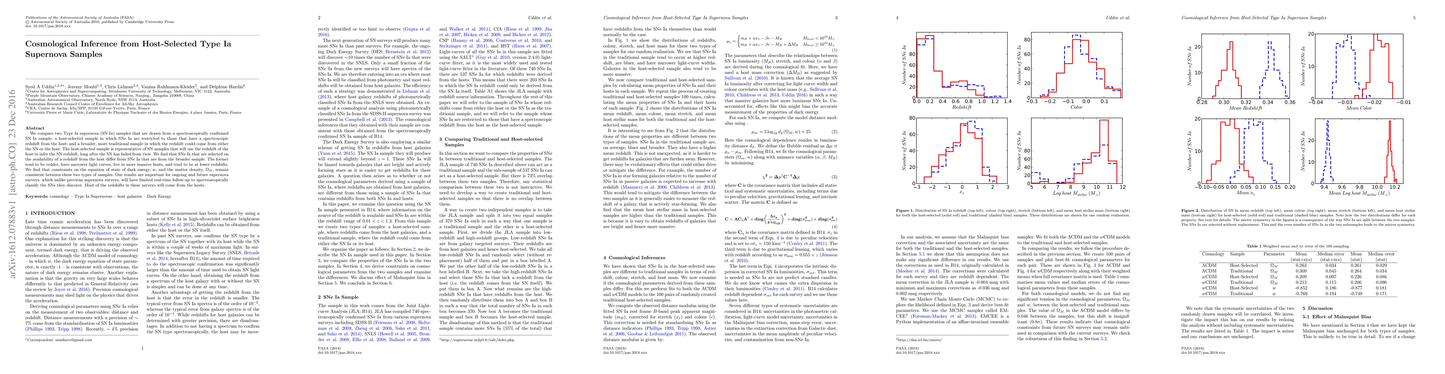 We compare two Type Ia supernova (SN Ia) samples that are drawn from a spectroscopically confirmed SN Ia sample: a host-selected sample in which SNe Ia are restricted to those that have a spectroscopic redshift from the host; and a broader, more traditional sample in which the redshift could come from either the SN or the host. The host-selected sample is representative of SN samples that will use the redshift of the host to infer the SN redshift, long after the SN has faded from view. We find that SNe Ia that are selected on the availability of a redshift from the host differ from SNe Ia that are from the broader sample. The former tend to be redder, have narrower light curves, live in more massive hosts, and tend to be at lower redshifts. We find that constraints on the equation of state of dark energy, $w$, and the matter density, $\Omega_M$, remain consistent between these two types of samples. Our results are important for ongoing and future supernova surveys, which unlike previous supernova surveys, will have limited real-time follow-up to spectroscopically classify the SNe they discover. Most of the redshifts in these surveys will come from the hosts.