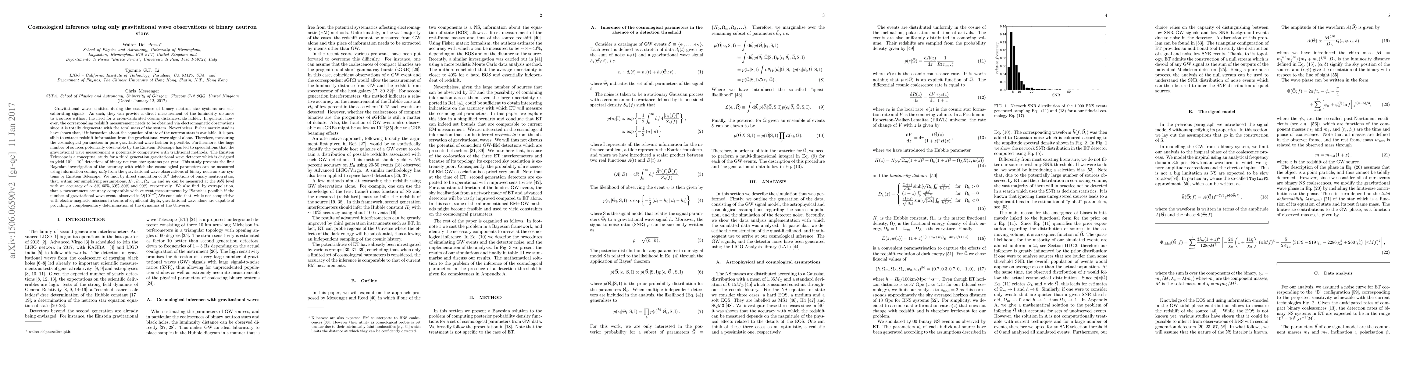 [Abridged] This study presents the first Bayesian investigation of the accuracy with which the cosmological parameters can be measured using information coming \emph{only} from the gravitational wave observations of binary neutron star systems by Einstein Telescope. We find, by direct simulation of $10^3$ detections of binary neutron stars, that, within our simplifying assumptions, $H_0,\Omega_m,\Omega_\Lambda,w_0$ and $w_1$ can be measured at the $95\%$ level with an accuracy of $\sim 8\%,65\%,39\%,80\%$ and $90\%$, respectively. We also find, by extrapolation, that a measurement accuracy comparable with current measurements by Planck is possible if the number of gravitational wave events observed is $O(10^{6-7})$. We conclude that, while not competitive with electro-magnetic missions in terms of significant digits, gravitational wave alone are capable of providing a complementary determination of the dynamics of the Universe.