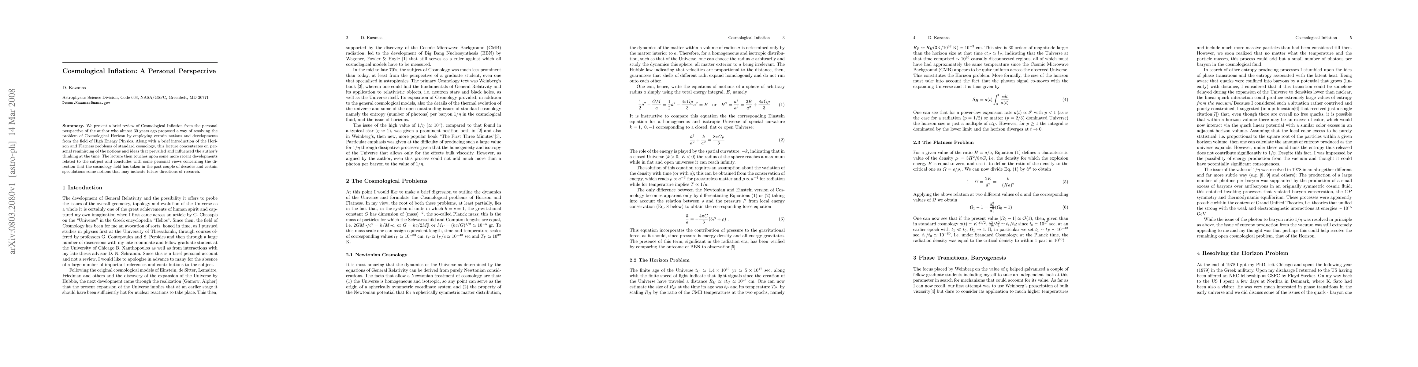 This paper offers a personal perspective on cosmological inflation, reflecting on the author's contributions nearly 30 years ago to resolving the Cosmological Horizon problem using concepts from High Energy Physics. It also discusses recent developments and the author's views on the future direction of cosmology research.