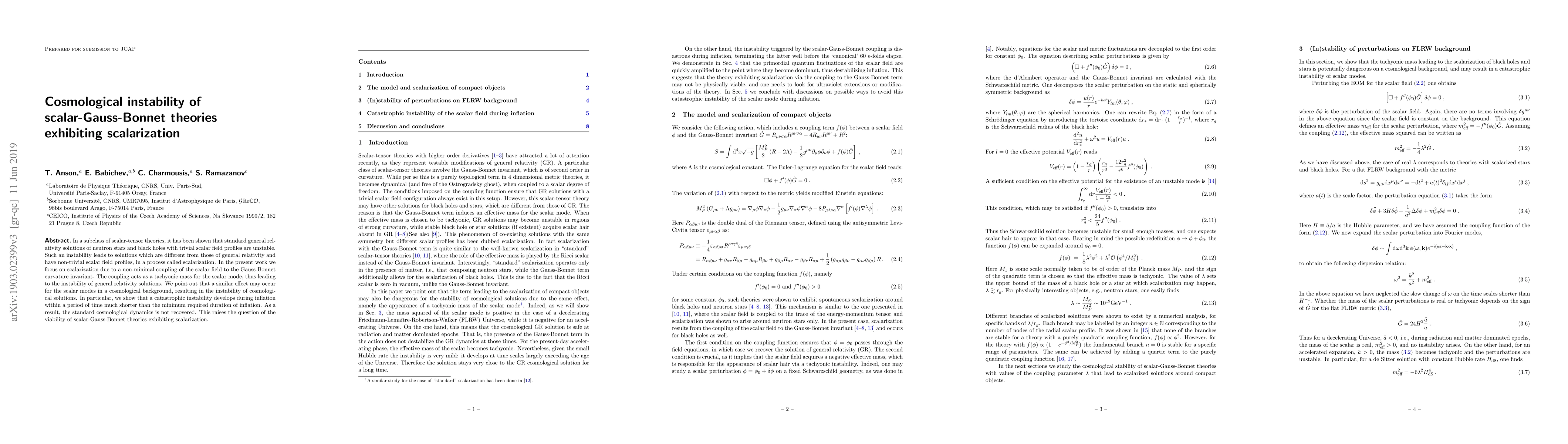 This paper investigates the cosmological instability in scalar-Gauss-Bonnet theories, showing that non-minimal coupling of the scalar field to the Gauss-Bonnet invariant leads to scalarization. It finds that this coupling causes a catastrophic instability during inflation, preventing the standard cosmological dynamics from being recovered.