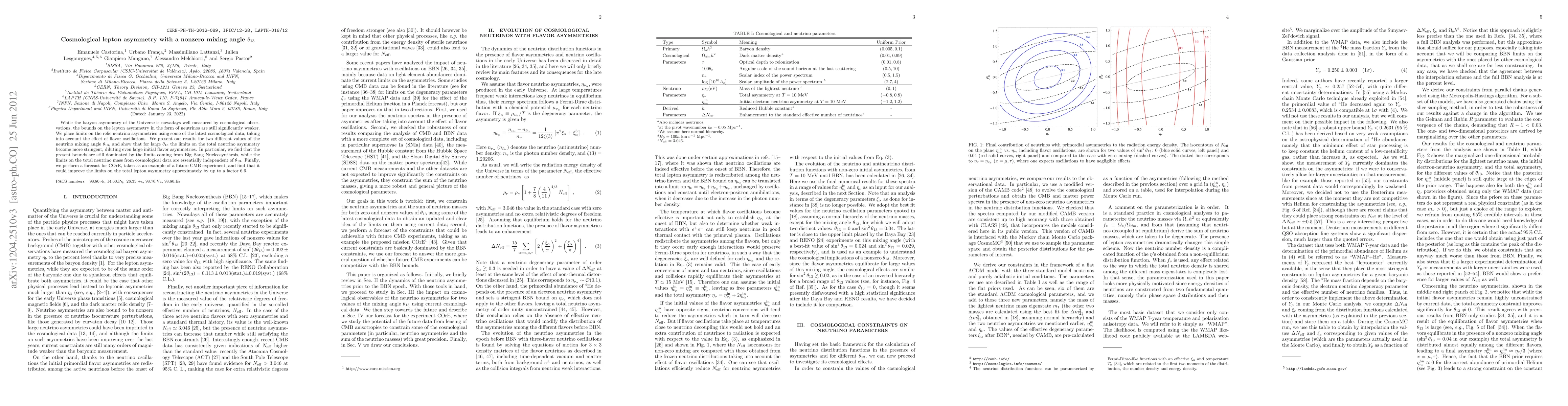 This paper investigates the cosmological lepton asymmetry in neutrinos, focusing on the impact of the mixing angle θ₁₃. It finds that larger θ₁₃ values tighten constraints on relic neutrino asymmetries, particularly diluting initial flavor asymmetries.