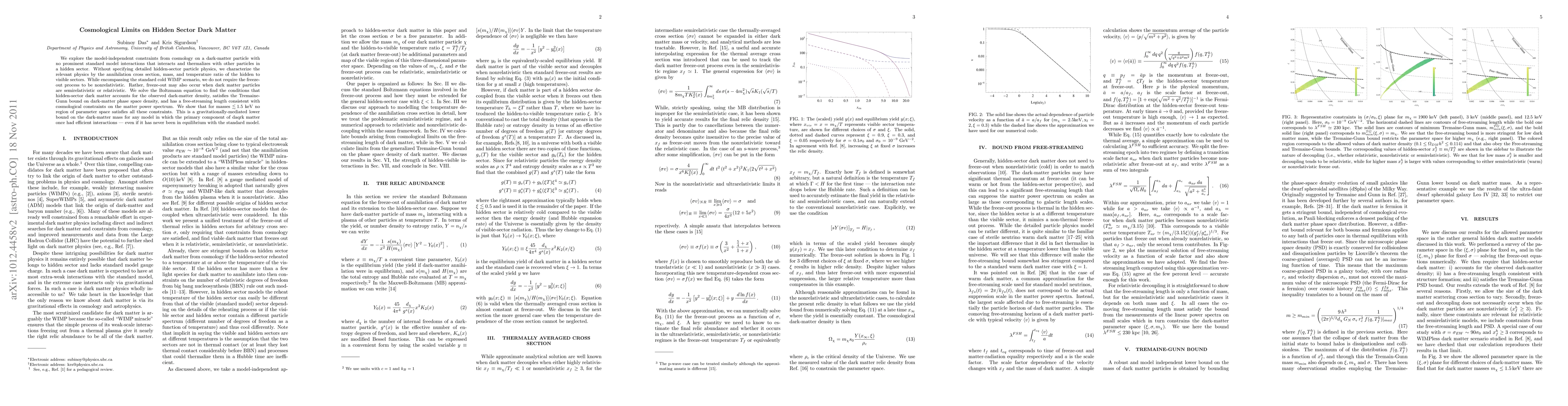 We explore the model-independent constraints from cosmology on a dark-matter particle with no prominent standard model interactions that interacts and thermalizes with other particles in a hidden sector. Without specifying detailed hidden-sector particle physics, we characterize the relevant physics by the annihilation cross section, mass, and temperature ratio of the hidden to visible sectors. While encompassing the standard cold WIMP scenario, we do not require the freeze-out process to be nonrelativistic. Rather, freeze-out may also occur when dark matter particles are semirelativistic or relativistic. We solve the Boltzmann equation to find the conditions that hidden-sector dark matter accounts for the observed dark-matter density, satisfies the Tremaine-Gunn bound on dark-matter phase space density, and has a free-streaming length consistent with cosmological constraints on the matter power spectrum. We show that for masses <1.5 keV no region of parameter space satisfies all these constraints. This is a gravitationally-mediated lower bound on the dark-matter mass for any model in which the primary component of dark matter once had efficient interactions -- even if it has never been in equilibrium with the standard model.