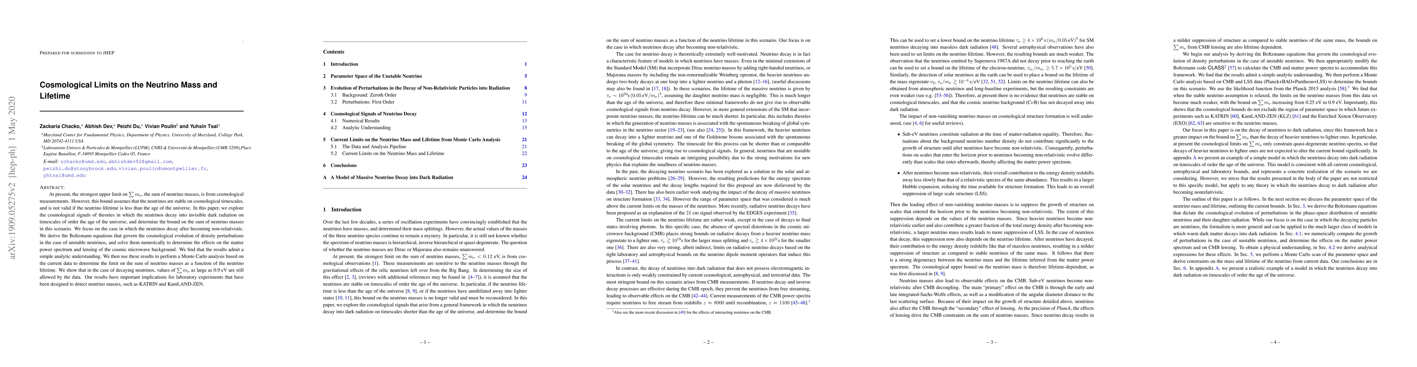This paper investigates the cosmological implications of neutrinos that decay into dark radiation, determining the sum of neutrino masses under such scenarios. It finds that decaying neutrinos allow for a sum of masses up to 0.9 eV, challenging current upper limits and impacting experiments like KATRIN and KamLAND-ZEN.