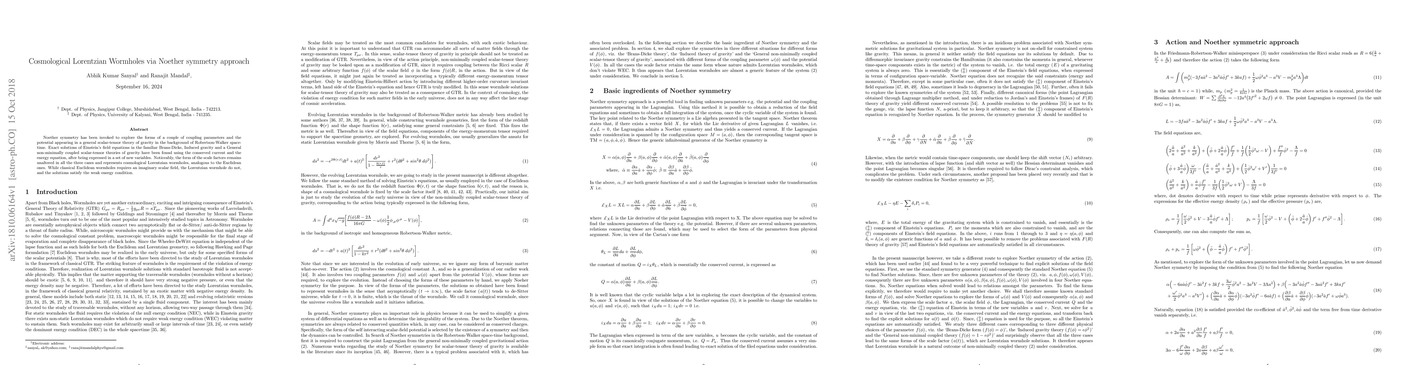 Researchers used Noether symmetry to discover cosmological Lorentzian wormholes in three different gravity theories, without requiring an imaginary scalar field, satisfying the weak energy condition.