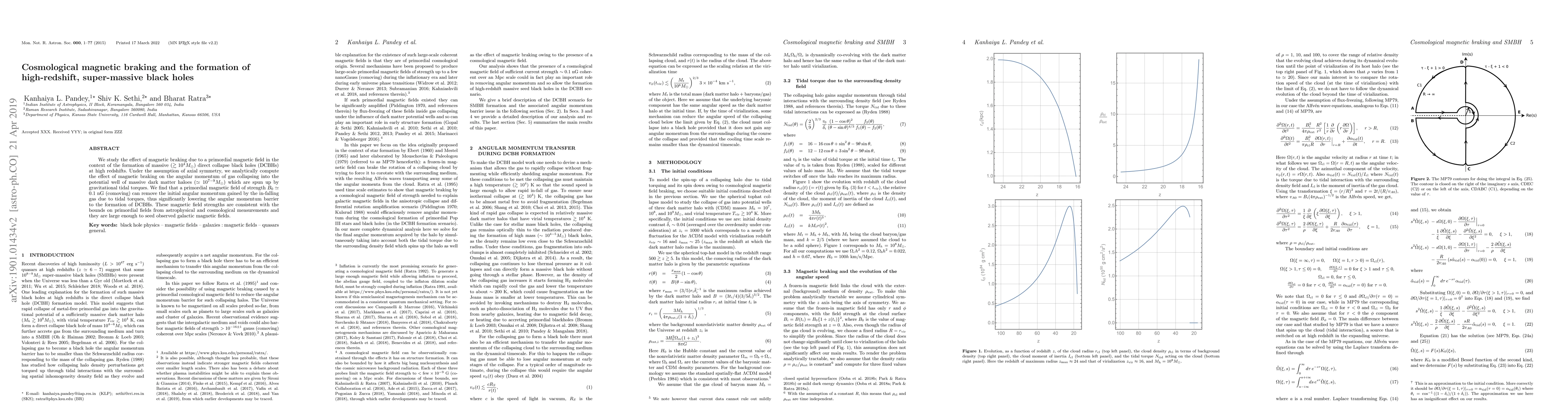 This paper investigates how primordial magnetic fields can facilitate the formation of high-redshift, supermassive black holes by reducing the angular momentum of gas collapsing into dark matter halos, thus lowering the barrier for the formation of direct collapse black holes. The study finds that magnetic braking by a field of strength around 0.1 nG is sufficient to achieve this.