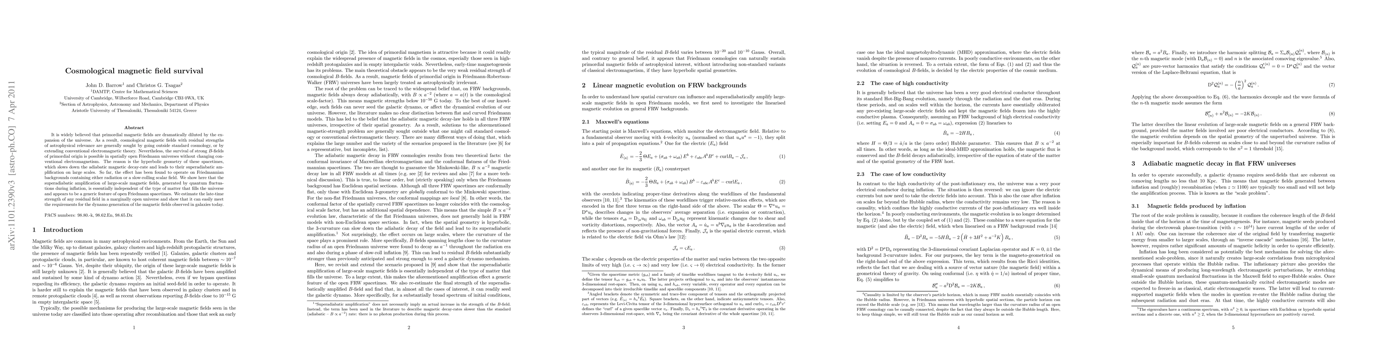 It is widely believed that primordial magnetic fields are dramatically diluted by the expansion of the universe. As a result, cosmological magnetic fields with residual strengths of astrophysical relevance are generally sought by going outside standard cosmology, or by extending conventional electromagnetic theory. Nevertheless, the survival of strong B-fields of primordial origin is possible in spatially open Friedmann universes without changing conventional electromagnetism. The reason is the hyperbolic geometry of these spacetimes, which slows down the adiabatic magnetic decay-rate and leads to their superadiabatic amplification on large scales. So far, the effect has been found to operate on Friedmannian backgrounds containing either radiation or a slow-rolling scalar field. We show here that the superadiabatic amplification of large-scale magnetic fields, generated by quantum fluctuations during inflation, is essentially independent of the type of matter that fills the universe and appears to be a generic feature of open Friedmann spacetimes. We estimate the late-time strength of any residual field in a marginally open universe and show that it can easily meet the requirements for the dynamo generation of the magnetic fields observed in galaxies today.
