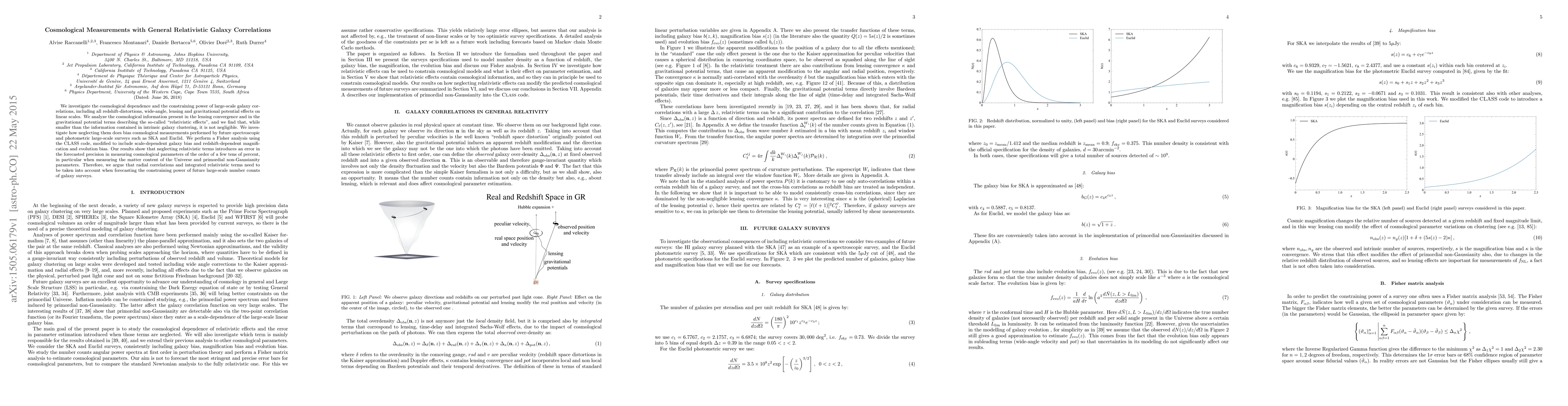 We investigate the cosmological dependence and the constraining power of large-scale galaxy correlations, including all redshift-distortions, wide-angle, lensing and gravitational potential effects on linear scales. We analyze the cosmological information present in the lensing convergence and in the gravitational potential terms describing the so-called "relativistic effects," and we find that, while smaller than the information contained in intrinsic galaxy clustering, it is not negligible. We investigate how neglecting them does bias cosmological measurements performed by future spectroscopic and photometric large-scale surveys such as SKA and Euclid. We perform a Fisher analysis using the CLASS code, modified to include scale-dependent galaxy bias and redshift-dependent magnification and evolution bias. Our results show that neglecting relativistic terms introduces an error in the forecasted precision in measuring cosmological parameters of the order of a few tens of percent, in particular when measuring the matter content of the Universe and primordial non-Gaussianity parameters. Therefore, we argue that radial correlations and integrated relativistic terms need to be taken into account when forecasting the constraining power of future large-scale number counts of galaxy surveys.