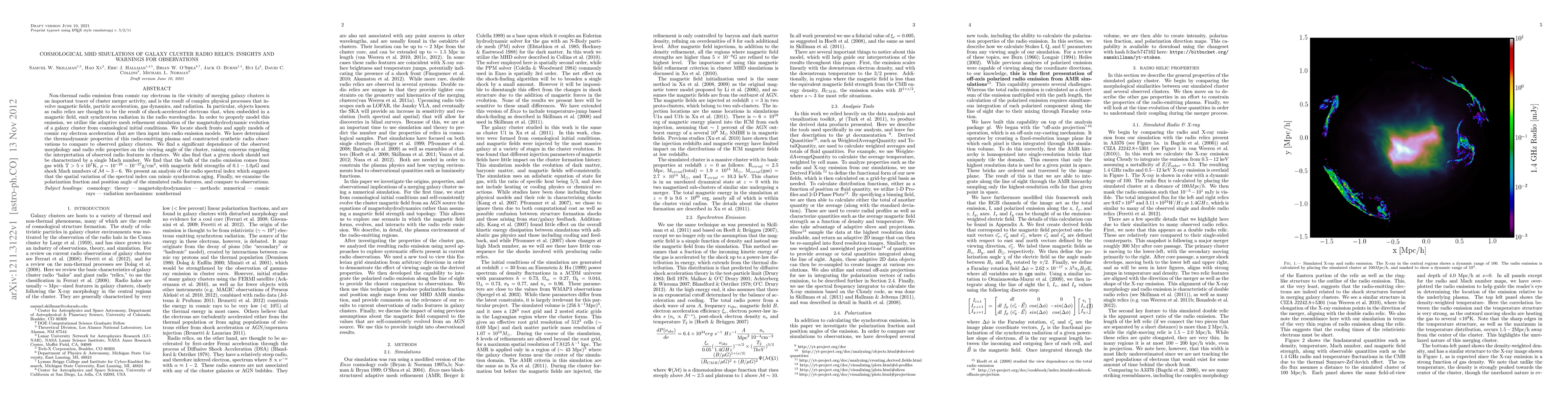 Non-thermal radio emission from cosmic ray electrons in the vicinity of merging galaxy clusters is an important tracer of cluster merger activity, and is the result of complex physical processes that involve magnetic fields, particle acceleration, gas dynamics, and radiation. In particular, objects known as radio relics are thought to be the result of shock-accelerated electrons that, when embedded in a magnetic field, emit synchrotron radiation in the radio wavelengths. In order to properly model this emission, we utilize the adaptive mesh refinement simulation of the magnetohydrodynamic evolution of a galaxy cluster from cosmological initial conditions. We locate shock fronts and apply models of cosmic ray electron acceleration that are then input into radio emission models. We have determined the thermodynamic properties of this radio-emitting plasma and constructed synthetic radio observations to compare to observed galaxy clusters. We find a significant dependence of the observed morphology and radio relic properties on the viewing angle of the cluster, raising concerns regarding the interpretation of observed radio features in clusters. We also find that a given shock should not be characterized by a single Mach number. We find that the bulk of the radio emission comes from gas with T>5x10^7, \rho~10^(-28)-10^(-27) g/cm^3, with magnetic field strengths of 0.1-1.0 \mu G and shock Mach numbers of M~3-6. We present an analysis of the radio spectral index which suggests that the spatial variation of the spectral index can mimic synchrotron aging. Finally, we examine the polarization fraction and position angle of the simulated radio features, and compare to observations.