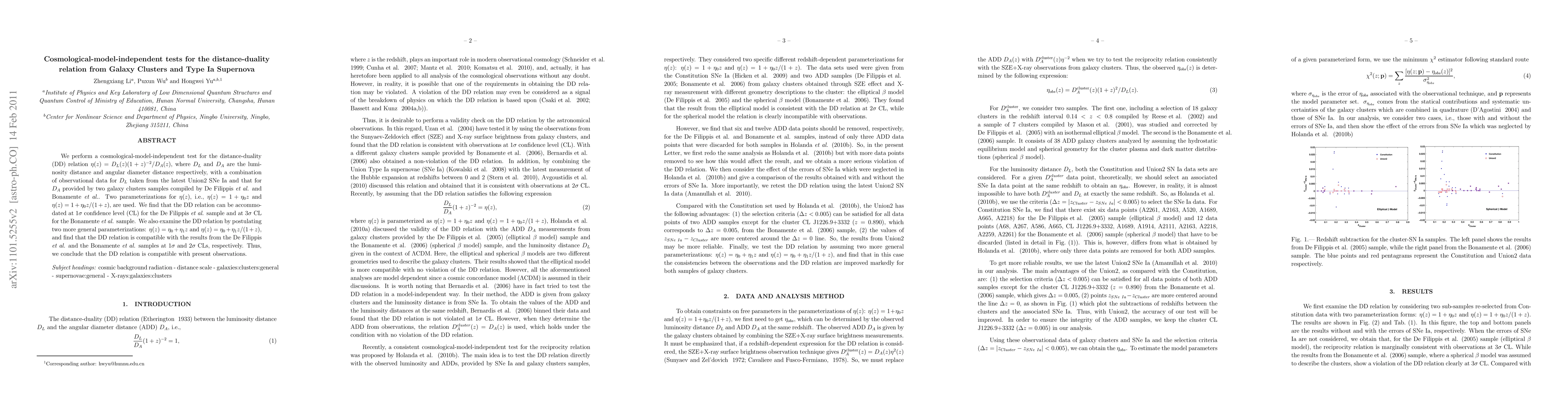 Researchers tested the distance-duality relation using data from galaxy clusters and Type Ia supernovae, finding that it is compatible with observations at a statistically significant level.
