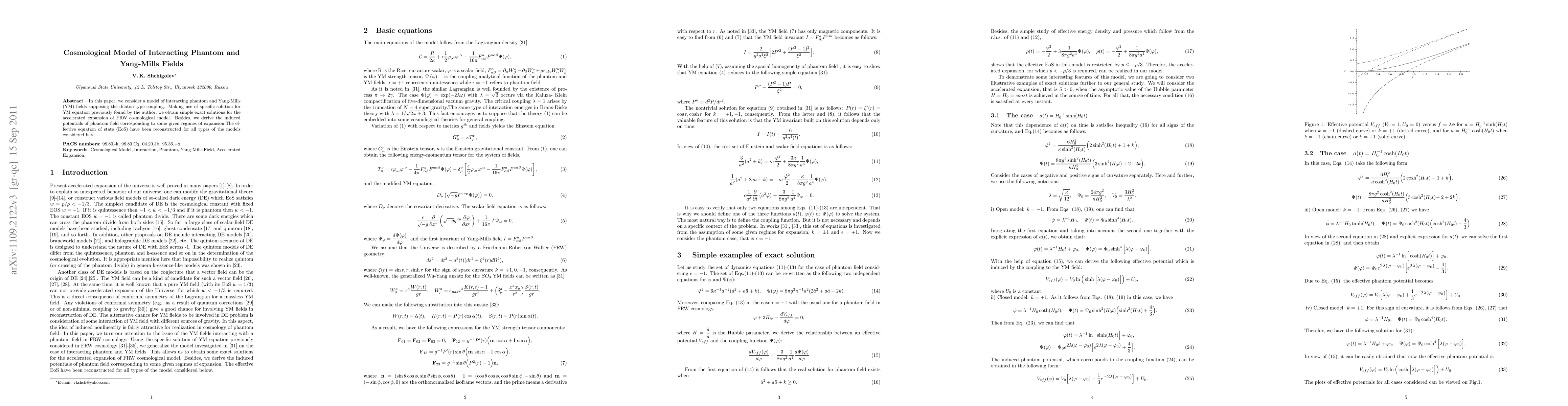 Researchers developed a cosmological model of interacting phantom and Yang-Mills fields to understand accelerated expansion in FRW models, deriving exact solutions and effective equation of state (EoS) for various regimes of expansion.