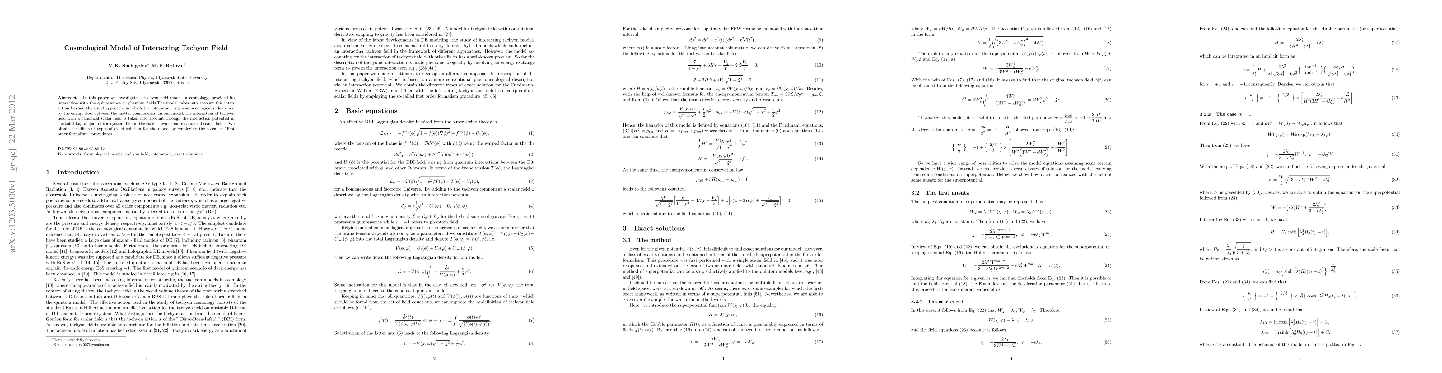 In this paper we investigate a tachyon field model in cosmology, provided its interaction with the quintessence or phantom fields.The model takes into account this interaction beyond the usual approach, in which the interaction is phenomenologically described by the energy flow between the matter components. In our model, the interaction of tachyon field with a canonical scalar field is taken into account through the interaction potential in the total Lagrangian of the system, like in the case of two or more canonical scalar fields. We obtain the different types of exact solution for the model by employing the so-called "first order formalism" procedures.