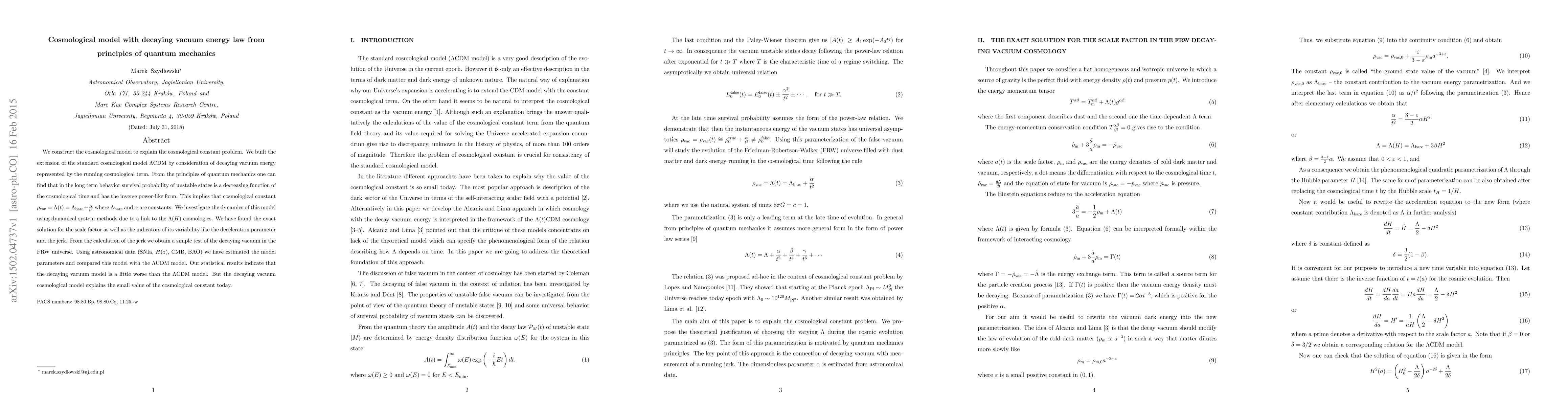 This paper proposes a cosmological model extending the $\Lambda$CDM model to address the cosmological constant problem by incorporating a decaying vacuum energy. The model predicts a time-dependent cosmological constant $\rho_{\text{vac}} = \Lambda(t) = \Lambda_{\text{bare}} + \frac{\alpha}{t^2}$, derived from quantum mechanics principles. The authors find an exact solution for the scale factor and compare the model's parameters to observational data, finding it slightly less favorable than the standard $\Lambda$CDM model but better at explaining the current small value of the cosmological constant.