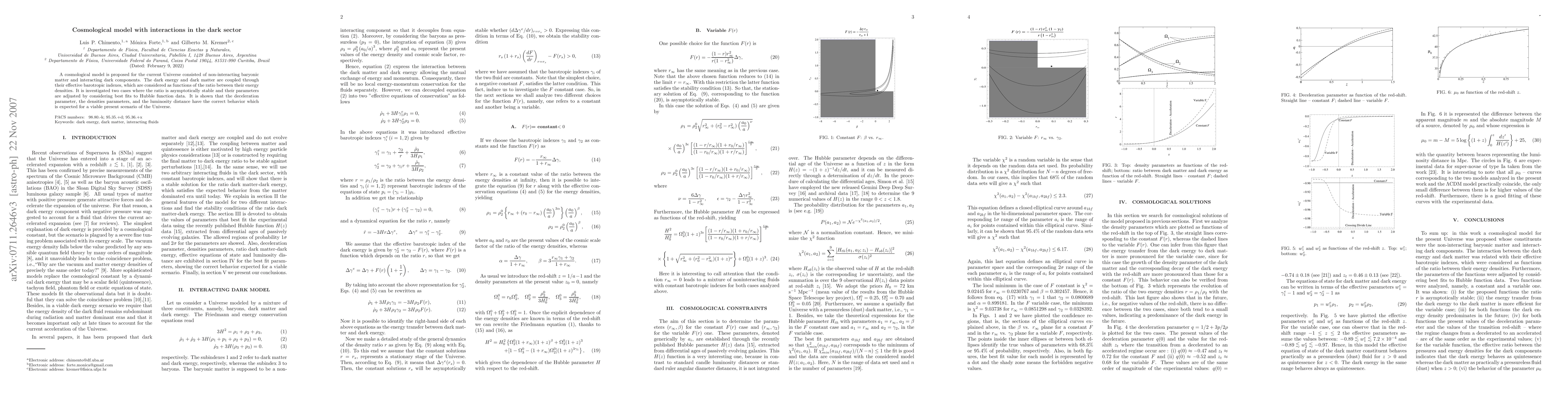 A cosmological model is proposed for the current Universe consisted of non-interacting baryonic matter and interacting dark components. The dark energy and dark matter are coupled through their effective barotropic indexes, which are considered as functions of the ratio between their energy densities. It is investigated two cases where the ratio is asymptotically stable and their parameters are adjusted by considering best fits to Hubble function data. It is shown that the deceleration parameter, the densities parameters, and the luminosity distance have the correct behavior which is expected for a viable present scenario of the Universe.