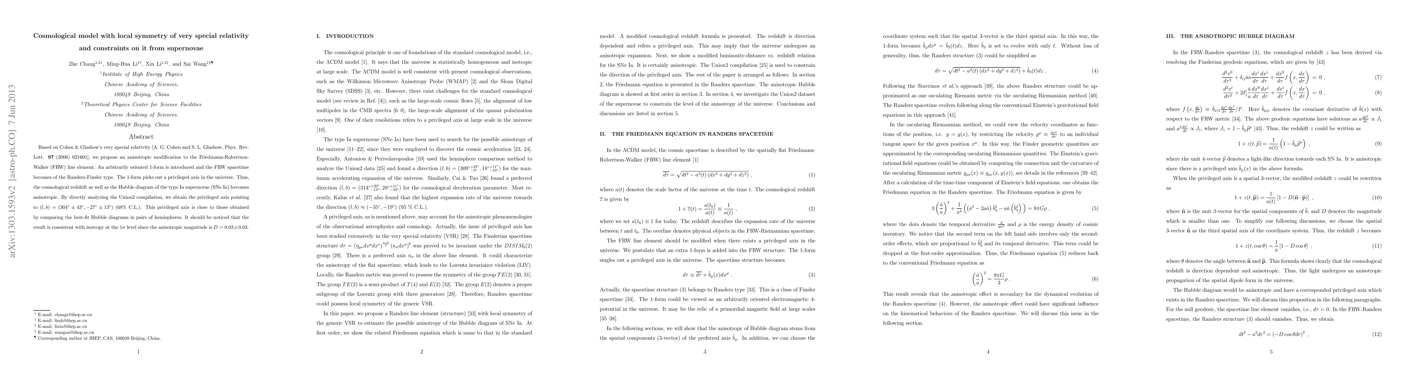Researchers proposed an anisotropic modification to the Friedmann-Robertson-Walker line element, suggesting a privileged axis in the universe that points to a specific location in the sky. This axis is consistent with isotropy at the 1σ level, and its direction matches some observed features of type Ia supernovae.
