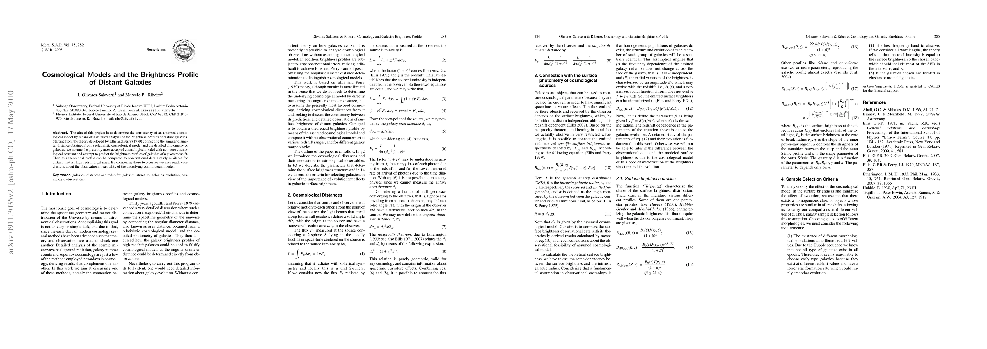 The aim of this project is to determine the consistency of an assumed cosmological model by means of a detailed analysis of the brightness profiles of distant galaxies.Starting from the theory developed by Ellis and Perry (1979) connecting the angular diameter distance obtained from a relativistic cosmological model and the detailed photometry of galaxies, we assume the presently most accepted cosmological model with non-zero cosmological constant and attempt to predict the brightness profiles of galaxies of a given redshift. Then this theoretical profile can be compared to observational data already available for distant, that is, high redshift, galaxies. By comparing these two curves we may reach conclusions about the observational feasibility of the underlying cosmological model.