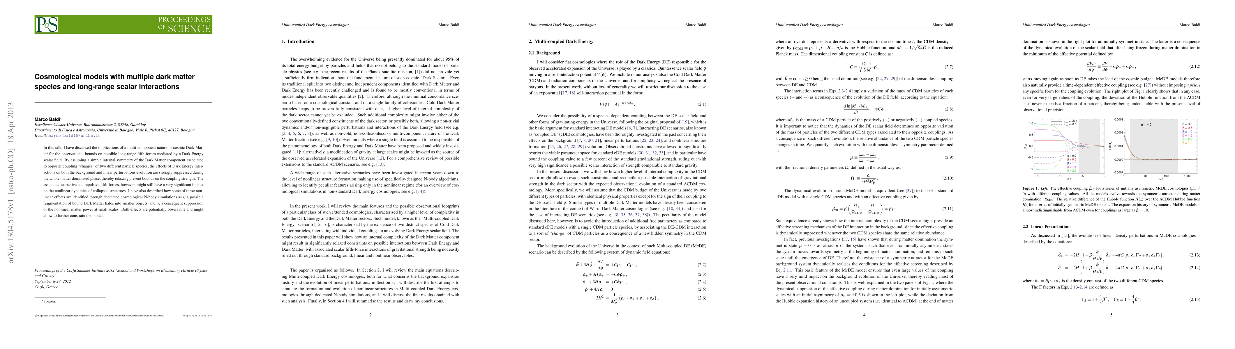 This paper explores cosmological models with multiple dark matter species and long-range scalar interactions, showing that such interactions are suppressed during the matter-dominated phase, relaxing current observational bounds. Nonlinear dynamics in collapsed structures may still reveal significant effects, including fragmentation of dark matter halos and suppression of matter power at small scales, potentially offering new observational constraints.