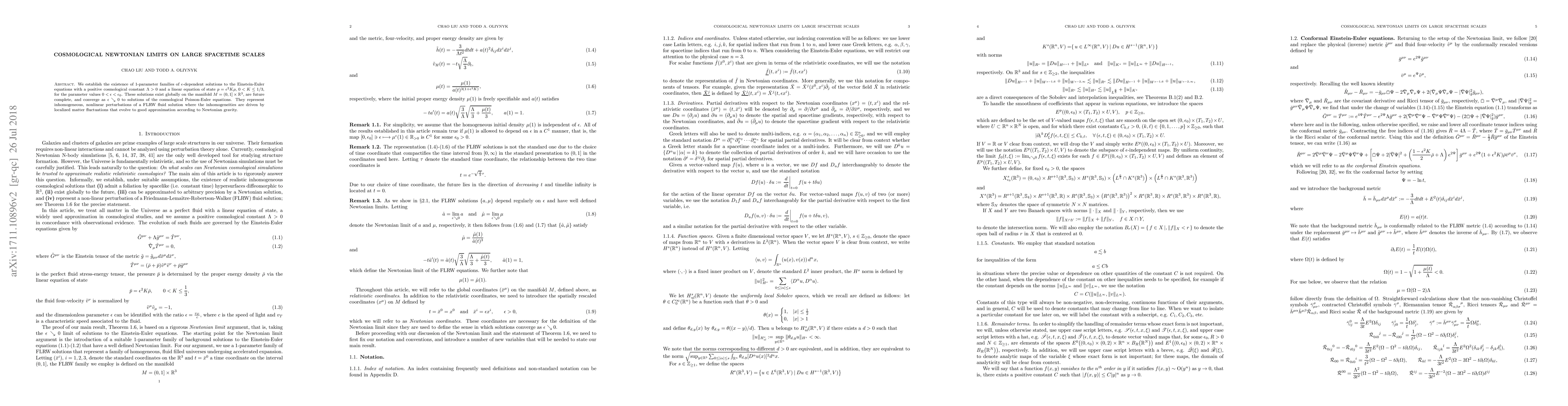 Researchers found solutions to Einstein-Euler equations with positive cosmological constant and linear equation of state, representing inhomogeneous perturbations driven by localized matter fluctuations. These solutions converge to Poisson-Euler equations as epsilon approaches 0.