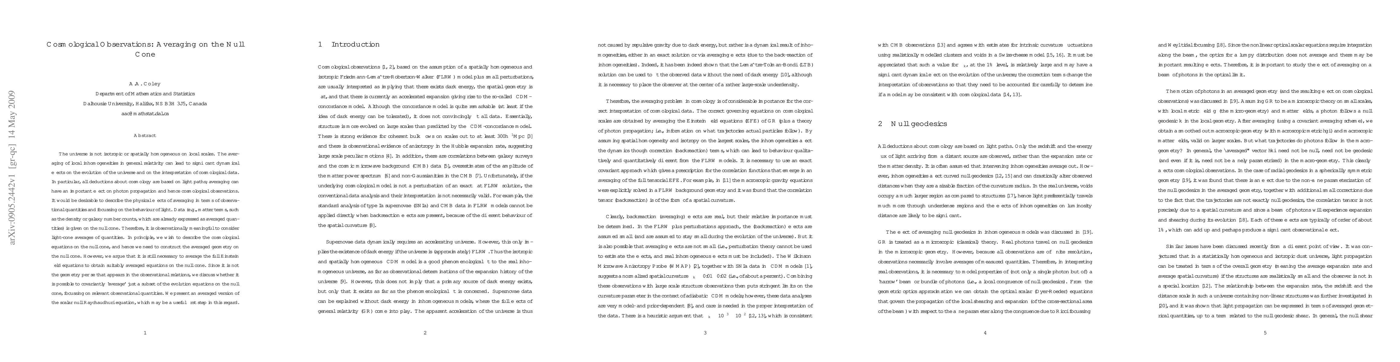 This paper explores the impact of averaging local inhomogeneities in general relativity on the universe's evolution and cosmological observations, focusing on light paths and photon propagation. The authors propose constructing an averaged geometry on the null cone to describe cosmological equations and present an averaged version of the scalar null Raychaudhuri equation as a first step towards this goal.