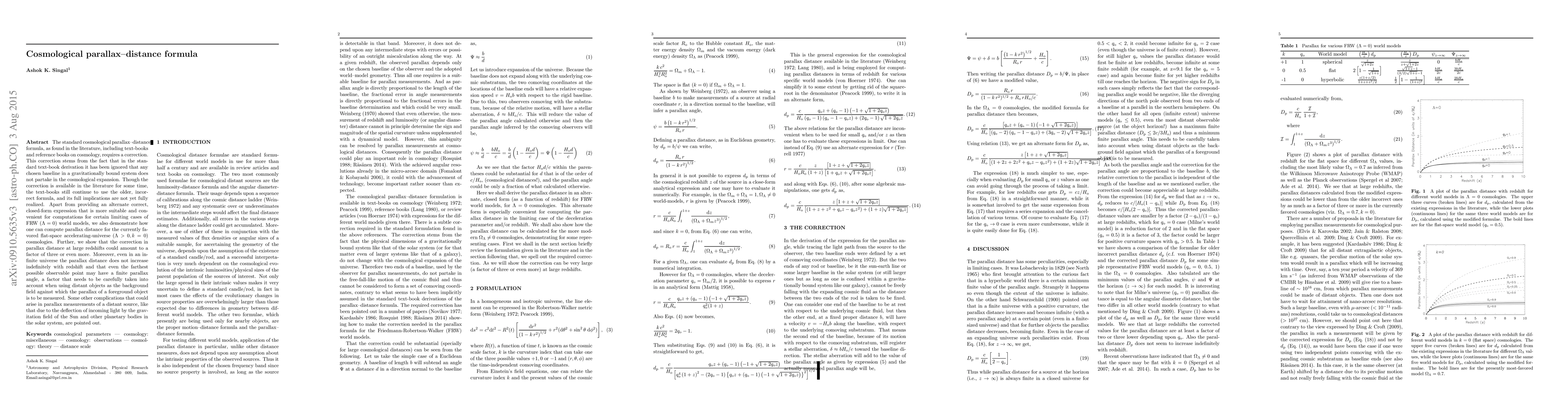 The standard cosmological parallax--distance formula, as found in the literature, including text-books and reference books on cosmology, requires a correction. This correction stems from the fact that in the standard text-book derivation it has been ignored that any chosen baseline in a gravitationally bound system does not partake in the cosmological expansion. Though the correction is available in the literature for some time, the text-books still continue to use the older, incorrect formula, and its full implications are not yet fully realized. Apart from providing an alternate correct, closed-form expression that is more suitable and convenient for computations for certain limiting cases of FRW ($\Lambda=0$) world models, we also demonstrate how one can compute parallax distance for the currently favored flat-space accelerating-universe ($\Lambda>0, k=0$) cosmologies. Further, we show that the correction in parallax distance at large redshifts could amount to a factor of three or even more. Moreover, even in an infinite universe the parallax distance does not increase indefinitely with redshift and that even the farthest possible observable point may have a finite parallax angle, a factor that needs to be carefully taken into account when using distant objects as the background field against which the parallax of a foreground object is to be measured. Some other complications that could arise in parallax measurements of a distant source, like that due to the deflection of incoming light by the gravitation field of the Sun and other planetary bodies in the solar system, are pointed out.