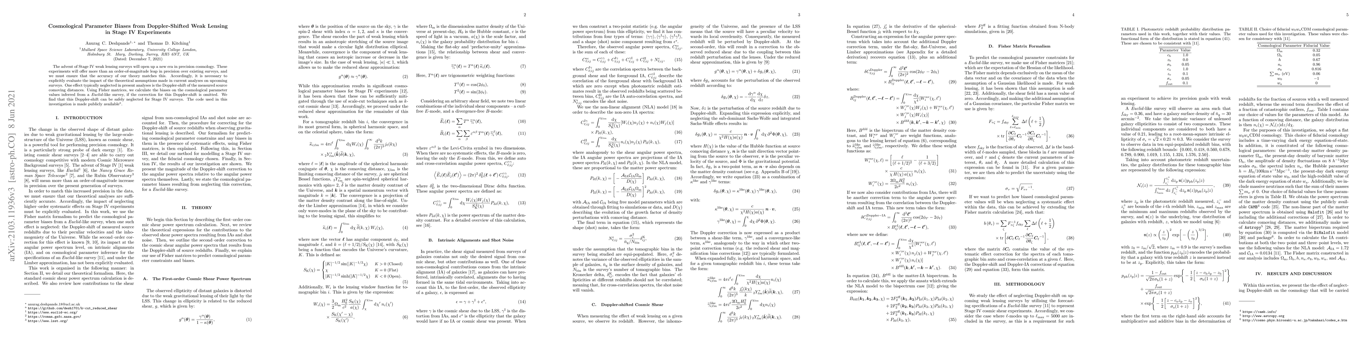 This paper investigates the impact of Doppler-shifted weak lensing on cosmological parameter estimations in Stage IV surveys, finding negligible biases when this effect is omitted. The authors use Fisher matrices to analyze a Euclid-like survey and make the computational tools used publicly available.