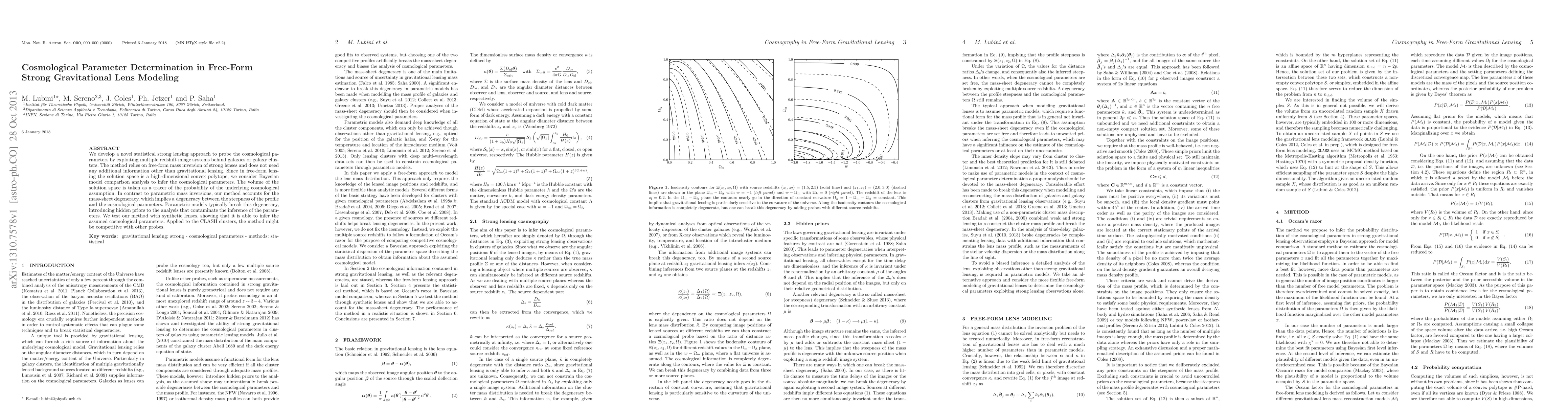 We develop a novel statistical strong lensing approach to probe the cosmological parameters by exploiting multiple redshift image systems behind galaxies or galaxy clusters. The method relies on free-form mass inversion of strong lenses and does not need any additional information other than gravitational lensing. Since in free-form lensing the solution space is a high-dimensional convex polytope, we consider Bayesian model comparison analysis to infer the cosmological parameters. The volume of the solution space is taken as a tracer of the probability of the underlying cosmological assumption. In contrast to parametric mass inversions, our method accounts for the mass-sheet degeneracy, which implies a degeneracy between the steepness of the profile and the cosmological parameters. Parametric models typically break this degeneracy, introducing hidden priors to the analysis that contaminate the inference of the parameters. We test our method with synthetic lenses, showing that it is able to infer the assumed cosmological parameters. Applied to the CLASH clusters, the method might be competitive with other probes.