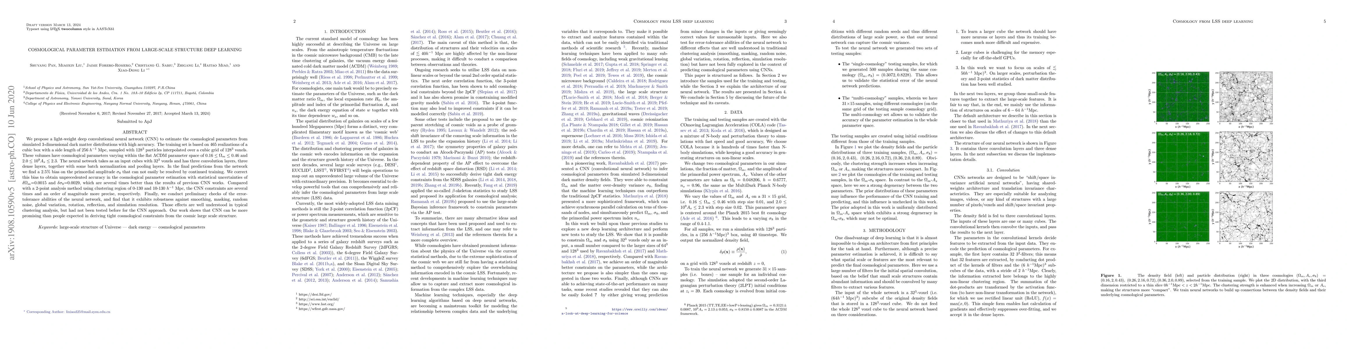 This paper proposes a lightweight deep convolutional neural network (CNN) to accurately estimate cosmological parameters from simulated dark matter distributions. The CNN achieves unprecedented accuracy with statistical uncertainties of $\delta \Omega_m$=0.0015 and $\delta \sigma_8$=0.0029, significantly outperforming previous methods and demonstrating robustness against various perturbations.