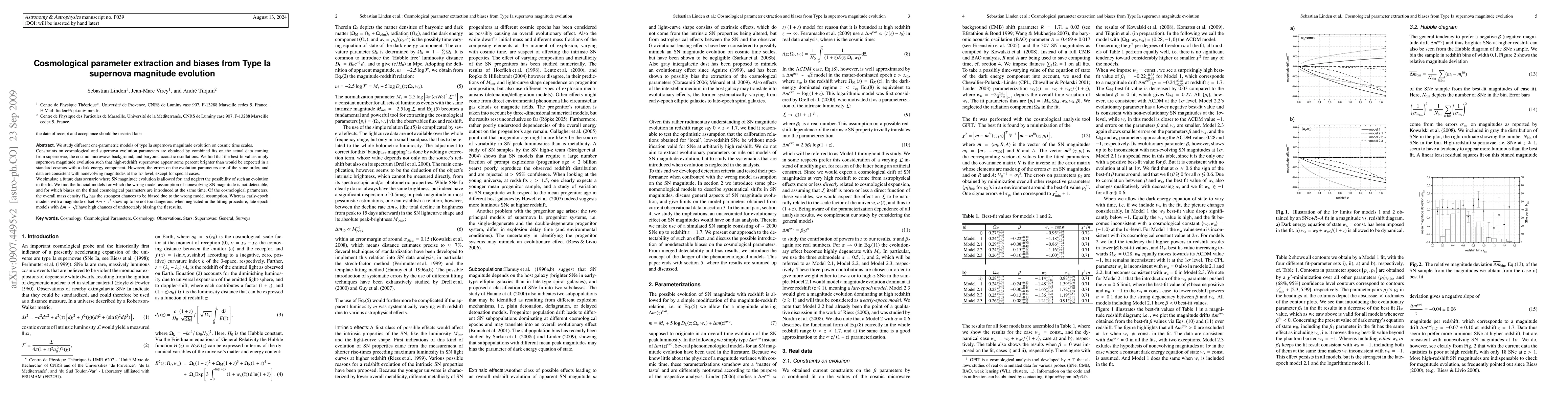 This paper explores one-parametric models of type Ia supernova magnitude evolution and finds that high-redshift supernovae appear brighter than expected in a standard dark energy model. It highlights biases in cosmological parameter extraction when assuming non-evolving supernova magnitudes, particularly affecting the overall mass density.