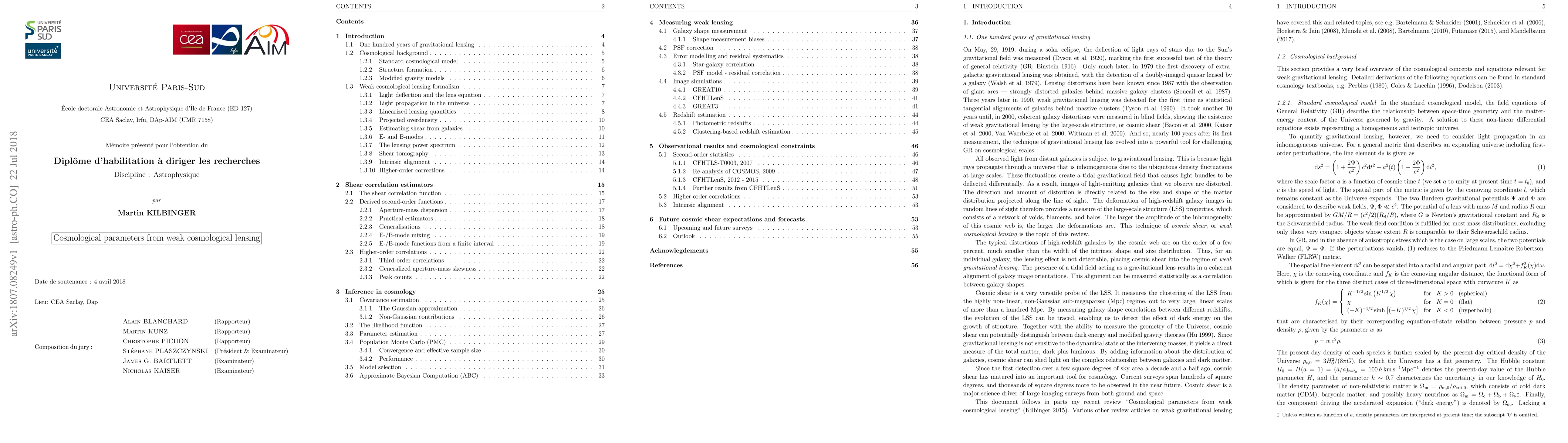 In this manuscript of the habilitation \`a diriger des recherches (HDR), the author presents some of his work over the last ten years. The main topic of this thesis is cosmic shear, the distortion of images of distant galaxies due to weak gravitational lensing by the large-scale structure in the Universe. Cosmic shear has become a powerful probe into the nature of dark matter and the origin of the current accelerated expansion of the Universe. Over the last years, cosmic shear has evolved into a reliable and robust cosmological probe, providing measurements of the expansion history of the Universe and the growth of its structure. I review the principles of weak gravitational lensing and show how cosmic shear is interpreted in a cosmological context. Then I give an overview of weak-lensing measurements, and present observational results from the Canada-France Hawai'i Lensing Survey (CFHTLenS), as well as the implications for cosmology. I conclude with an outlook on the various future surveys and missions, for which cosmic shear is one of the main science drivers, and discuss promising new weak cosmological lensing techniques for future observations.