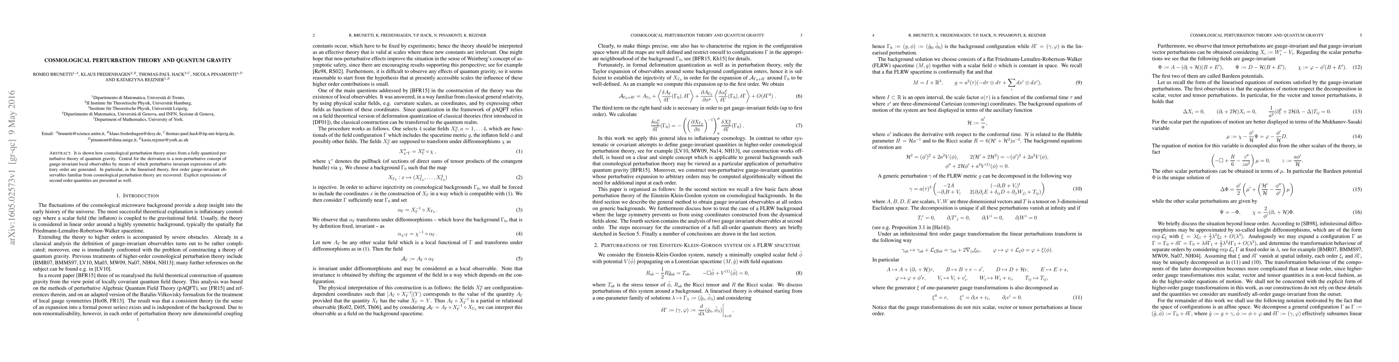 This paper demonstrates how cosmological perturbation theory emerges from a quantized perturbative quantum gravity framework, utilizing gauge-invariant local observables to generate invariant expressions. It recovers first-order cosmological observables and presents explicit second-order quantities.