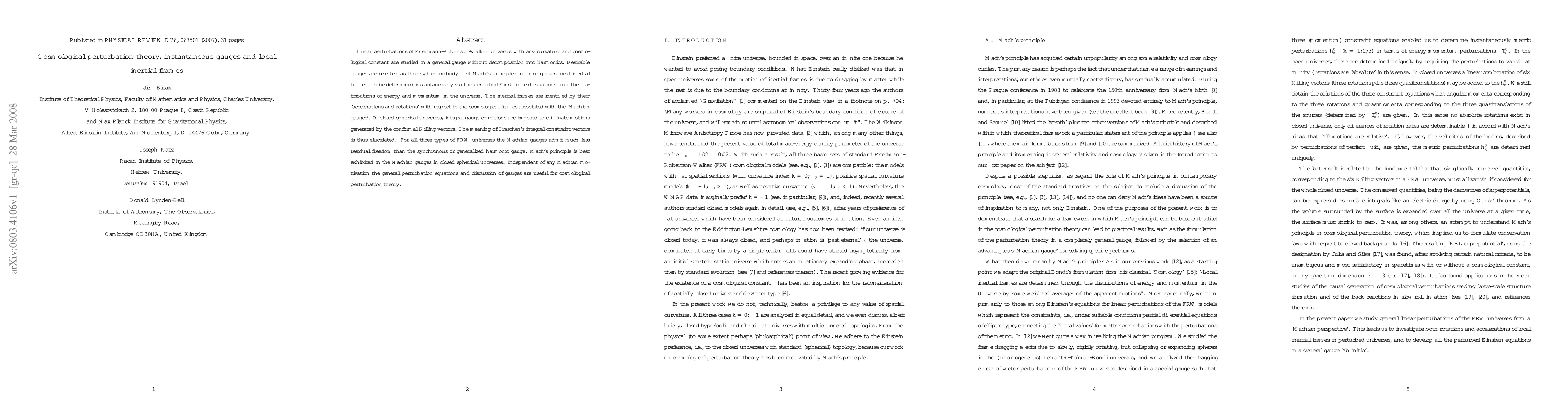 This paper studies linear perturbations of Friedmann-Robertson-Walker universes in various gauges, focusing on those that best embody Mach's principle by allowing instantaneous determination of local inertial frames from energy and momentum distributions. It highlights the reduced residual freedom and clearer physical interpretation in Machian gauges compared to synchronous or harmonic gauges.