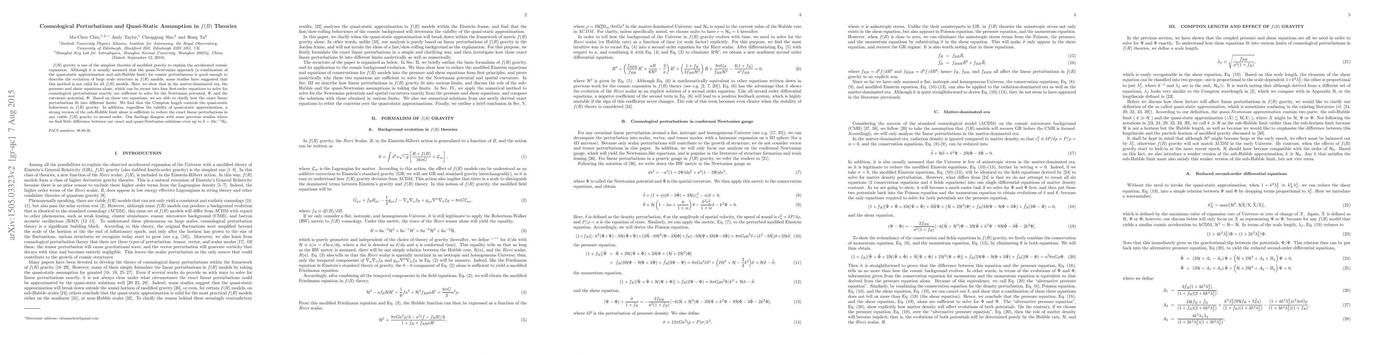 This paper investigates the validity of the quasi-Newtonian approach for cosmological perturbations in $f(R)$ gravity, demonstrating that exact linear perturbation equations suffice to describe the Newtonian potential and curvature potential. The study concludes that the Compton length governs quasi-static behaviors, and a strong version of the sub-Hubble limit can reduce exact perturbations to second order, contradicting some previous claims.