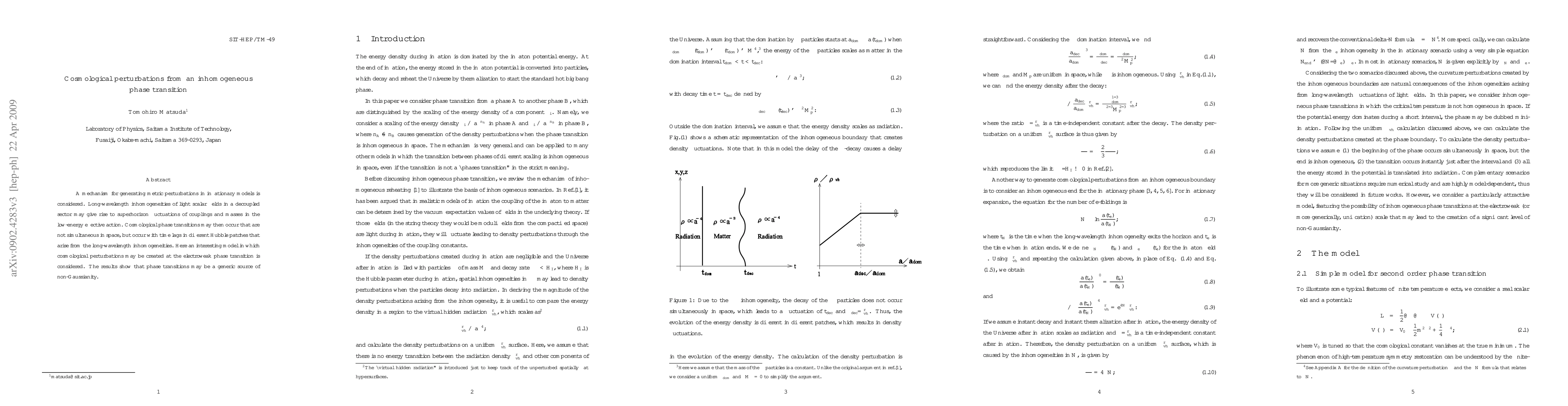 A mechanism for generating metric perturbations in inflationary models is considered. Long-wavelength inhomogeneities of light scalar fields in a decoupled sector may give rise to superhorizon fluctuations of couplings and masses in the low-energy effective action. Cosmological phase transitions may then occur that are not simultaneous in space, but occur with time lags in different Hubble patches that arise from the long-wavelength inhomogeneities. Here an interesting model in which cosmological perturbations may be created at the electroweak phase transition is considered. The results show that phase transitions may be a generic source of non-Gaussianity.
