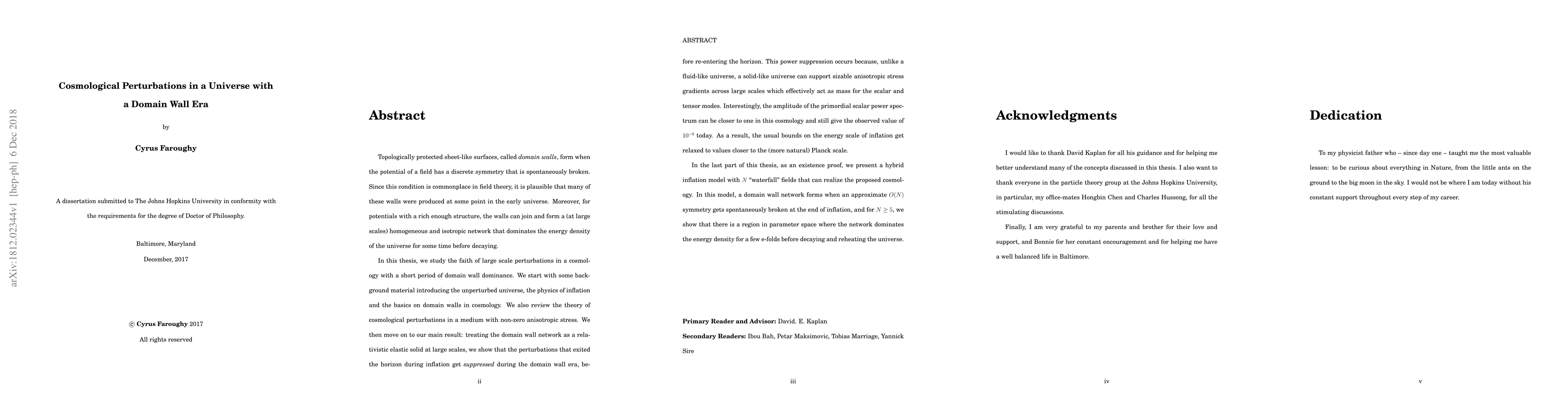 Topologically protected sheet-like surfaces, called domain walls, form when the potential of a field has a discrete symmetry that is spontaneously broken. Since this condition is commonplace in field theory, it is plausible that many of these walls were produced at some point in the early universe. Moreover, for potentials with a rich enough structure, the walls can join and form a (at large scales) homogeneous and isotropic network that dominates the energy density of the universe for some time before decaying. In this thesis, we study the faith of large scale perturbations in a cosmology with a short period of domain wall dominance. Treating the domain wall network as a relativistic elastic solid at large scales, we show that the perturbations that exited the horizon during inflation get suppressed during the domain wall era, before re-entering the horizon. This power suppression occurs because, unlike a fluid-like universe, a solid-like universe can support sizable anisotropic stress gradients across large scales which effectively act as mass for the scalar and tensor modes. Interestingly, the amplitude of the primordial scalar power spectrum can be closer to one in this cosmology and still give the observed value of $10^{-9}$ today. As a result, the usual bounds on the energy scale of inflation get relaxed to values closer to the (more natural) Planck scale. In the last part of this thesis, as an existence proof, we present a hybrid inflation model with $N$ `waterfall' fields that can realize the proposed cosmology. In this model, a domain wall network forms when an approximate $O(N)$ symmetry gets spontaneously broken at the end of inflation, and for $N \geq 5$, we show that there is a region in parameter space where the network dominates the energy density for a few e-folds before decaying and reheating the universe.