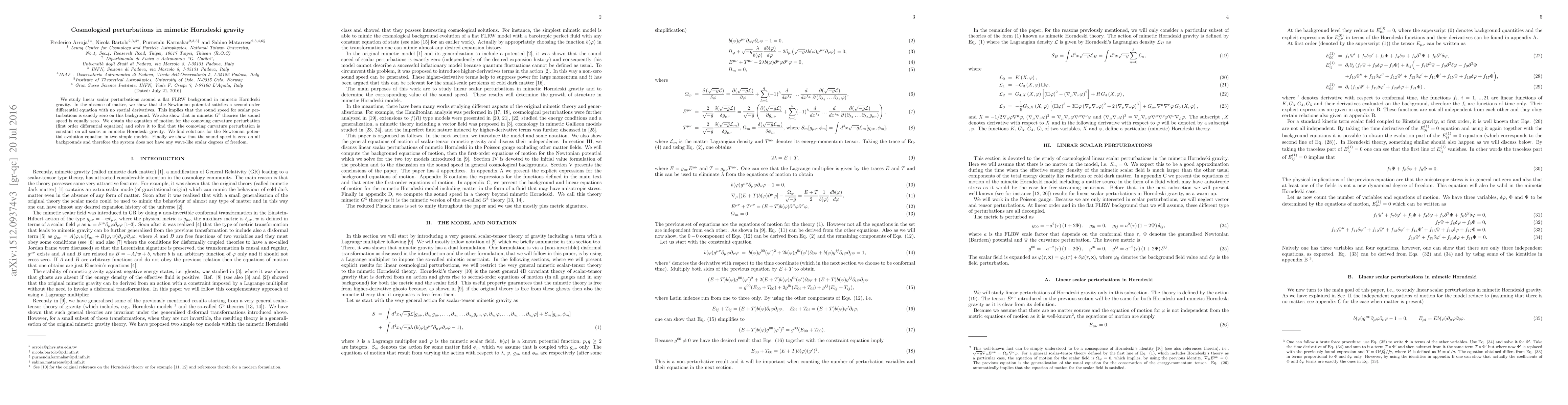 This paper investigates linear scalar perturbations in mimetic Horndeski gravity, revealing a second-order differential equation for the Newtonian potential with sound speed zero. It finds the comoving curvature perturbation to be scale-invariant and concludes that the theory lacks wave-like scalar degrees of freedom due to zero sound speed.