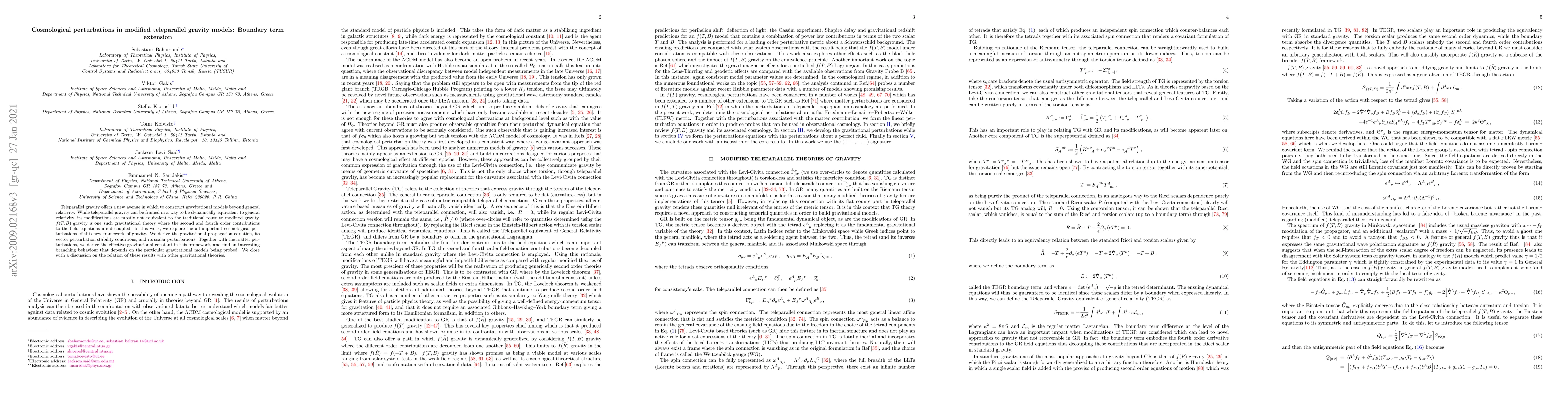 This research explores cosmological perturbations in $f(T,B)$ modified teleparallel gravity, deriving gravitational propagation equations and perturbation stability conditions. It highlights a branching behavior in effective gravitational constants across different models, and discusses its implications relative to other gravitational theories.