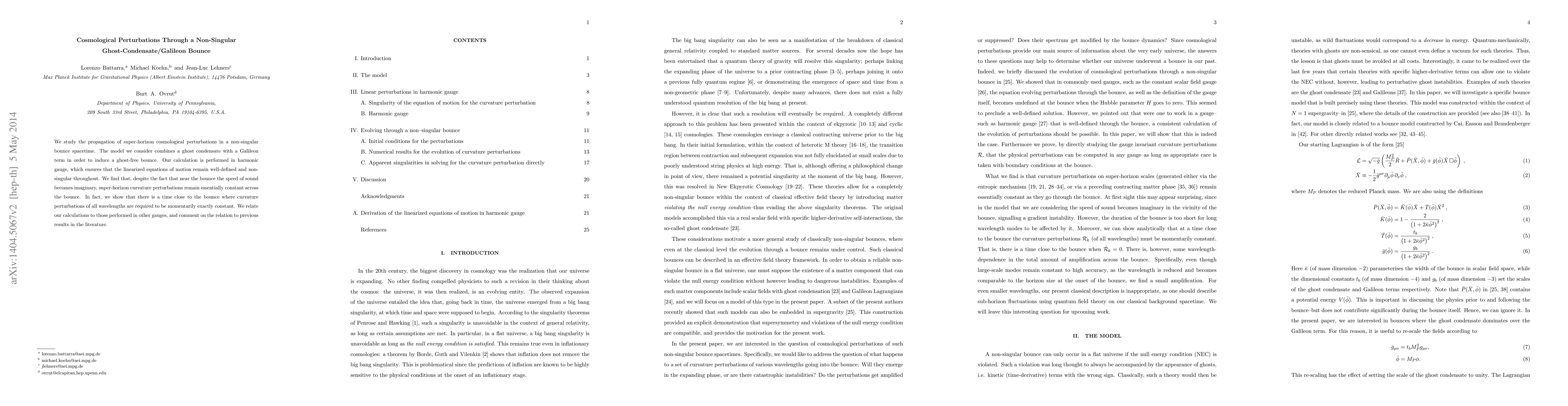 We study the propagation of super-horizon cosmological perturbations in a non-singular bounce spacetime. The model we consider combines a ghost condensate with a Galileon term in order to induce a ghost-free bounce. Our calculation is performed in harmonic gauge, which ensures that the linearized equations of motion remain well-defined and non-singular throughout. We find that, despite the fact that near the bounce the speed of sound becomes imaginary, super-horizon curvature perturbations remain essentially constant across the bounce. In fact, we show that there is a time close to the bounce where curvature perturbations of all wavelengths are required to be momentarily exactly constant. We relate our calculations to those performed in other gauges, and comment on the relation to previous results in the literature.