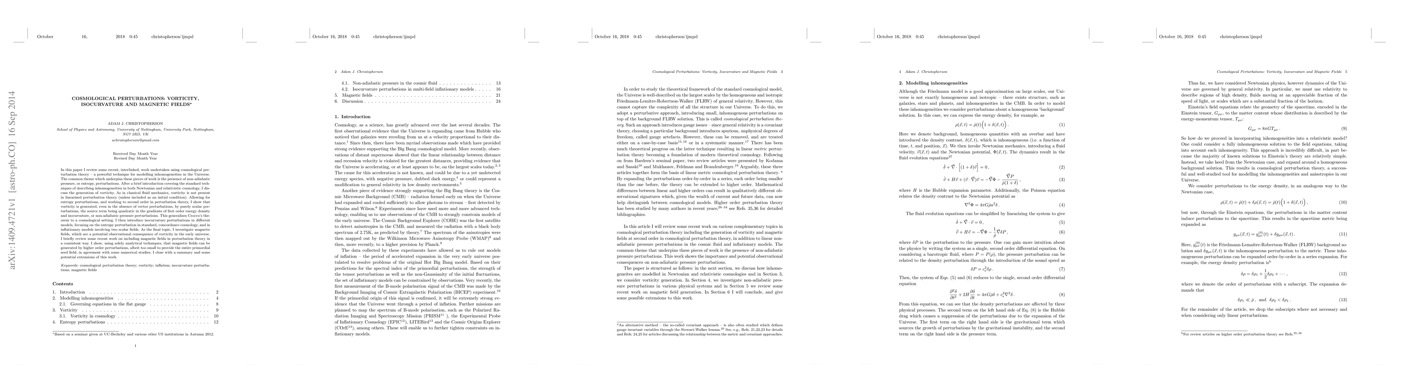 In this paper I review some recent, interlinked, work undertaken using cosmological perturbation theory -- a powerful technique for modelling inhomogeneities in the Universe. The common theme which underpins these pieces of work is the presence of non-adiabatic pressure, or entropy, perturbations. After a brief introduction covering the standard techniques of describing inhomogeneities in both Newtonian and relativistic cosmology, I discuss the generation of vorticity. As in classical fluid mechanics, vorticity is not present in linearized perturbation theory (unless included as an initial condition). Allowing for entropy perturbations, and working to second order in perturbation theory, I show that vorticity is generated, even in the absence of vector perturbations, by purely scalar perturbations, the source term being quadratic in the gradients of first order energy density and isocurvature, or non-adiabatic pressure perturbations. This generalizes Crocco's theorem to a cosmological setting. I then introduce isocurvature perturbations in different models, focusing on the entropy perturbation in standard, concordance cosmology, and in inflationary models involving two scalar fields. As the final topic, I investigate magnetic fields, which are a potential observational consequence of vorticity in the early universe. I briefly review some recent work on including magnetic fields in perturbation theory in a consistent way. I show, using solely analytical techniques, that magnetic fields can be generated by higher order perturbations, albeit too small to provide the entire primordial seed field, in agreement with some numerical studies. I close with a summary and some potential extensions of this work.
