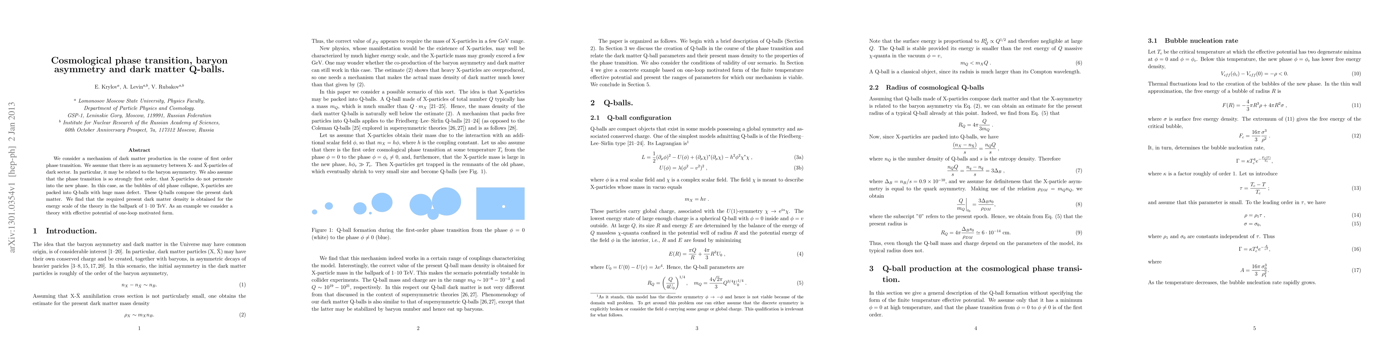 This paper explores a mechanism for dark matter production during a first-order cosmological phase transition, suggesting that dark sector particles (X-particles) form Q-balls with significant mass defects. It links this process to the baryon asymmetry and estimates the energy scale for this mechanism to be around 1-10 TeV.