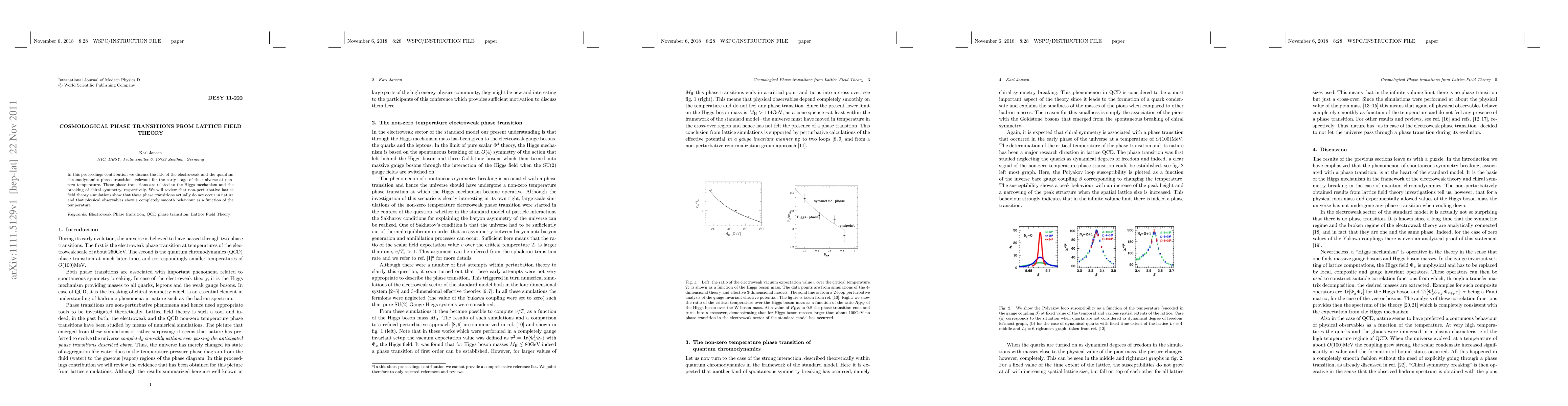 In this proceedings contribution we discuss the fate of the electroweak and the quantum chromodynamics phase transitions relevant for the early stage of the universe at non-zero temperature. These phase transitions are related to the Higgs mechanism and the breaking of chiral symmetry, respectively. We will review that non-perturbative lattice field theory simulations show that these phase transitions actually do not occur in nature and that physical observables show a completely smooth behaviour as a function of the temperature.