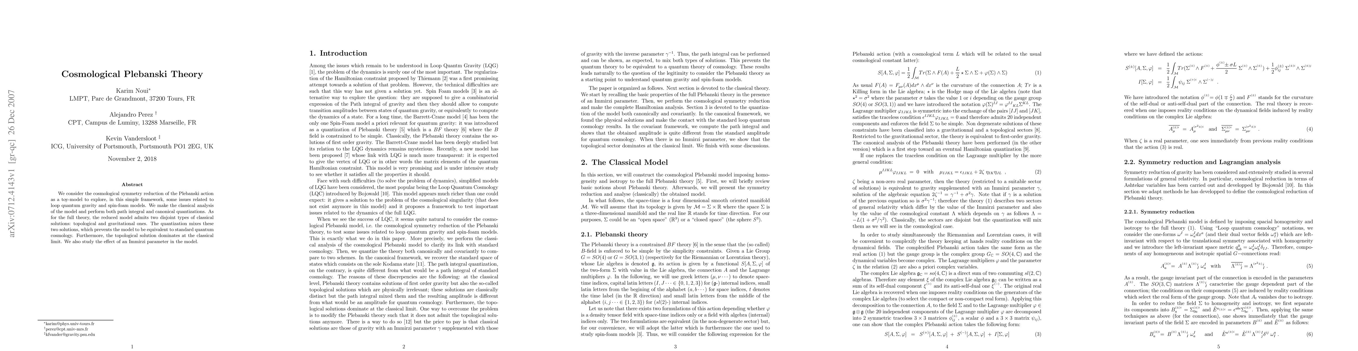 We consider the cosmological symmetry reduction of the Plebanski action as a toy-model to explore, in this simple framework, some issues related to loop quantum gravity and spin-foam models. We make the classical analysis of the model and perform both path integral and canonical quantizations. As for the full theory, the reduced model admits two types of classical solutions: topological and gravitational ones. The quantization mixes these two solutions, which prevents the model to be equivalent to standard quantum cosmology. Furthermore, the topological solution dominates at the classical limit. We also study the effect of an Immirzi parameter in the model.